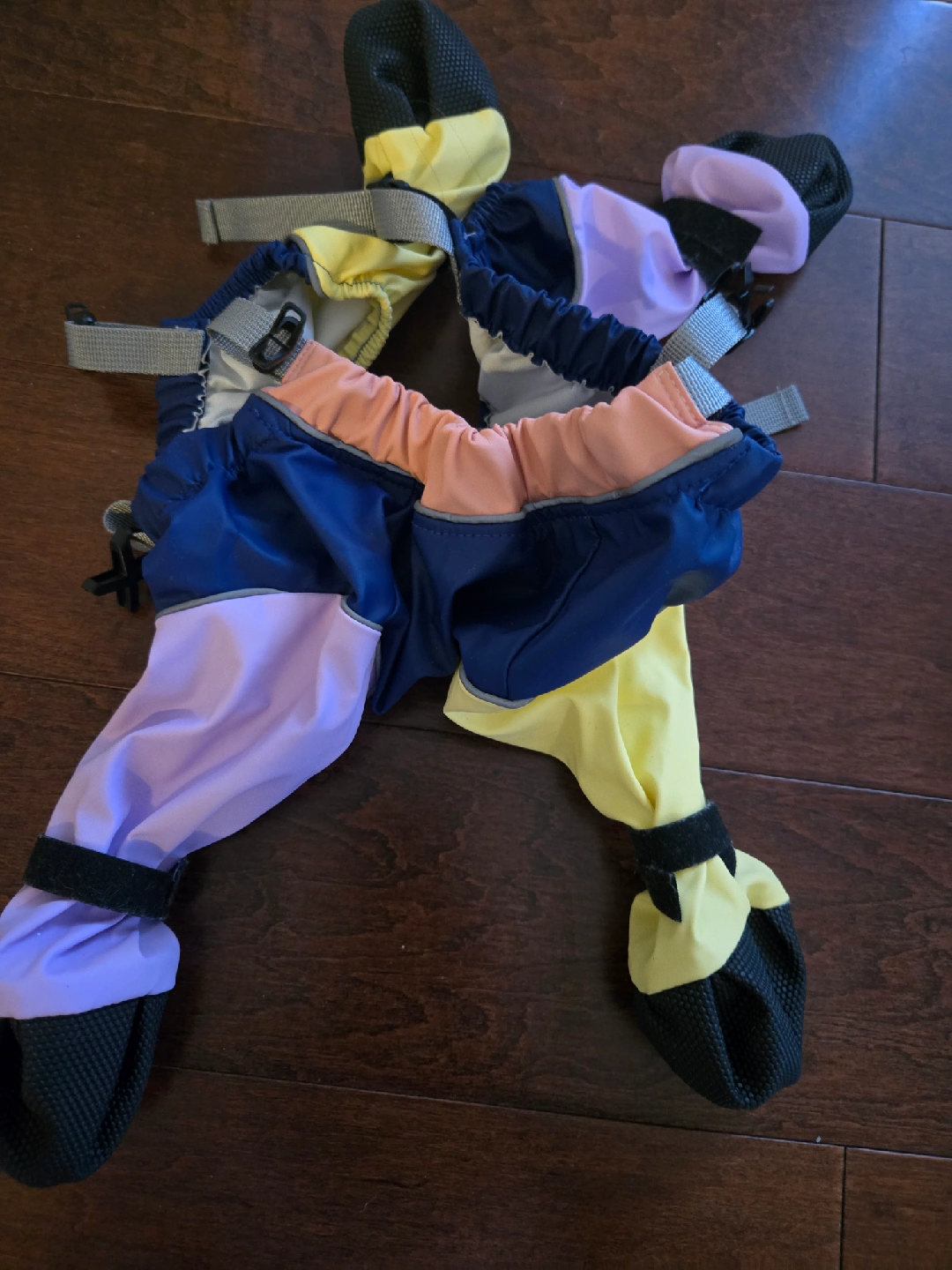 Keep your furry friend dry and stylish with these waterproof dog leggings! They're colourful and designed to keep their legs clean on walks, especially during wet or muddy weather. The leggings are size small and feature adjustable straps for a snug fit. Perfect for protecting your pup's paws and lower legs!