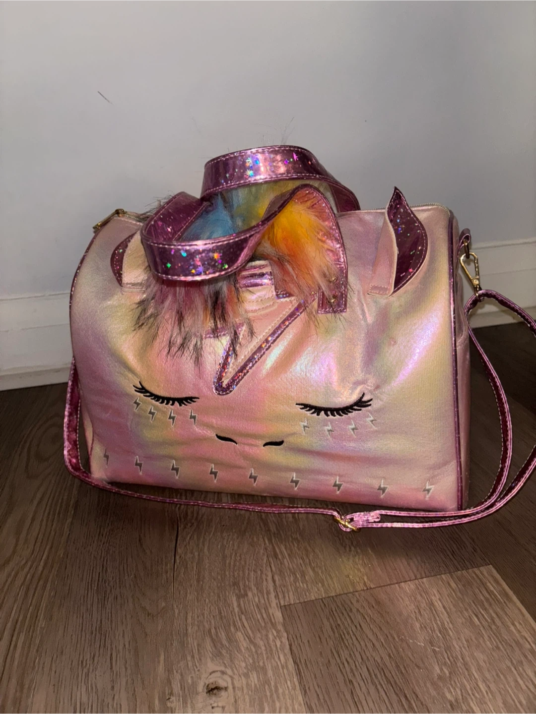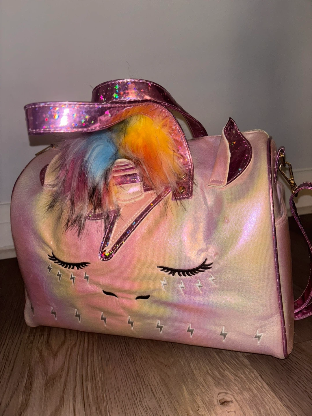 This is an adorable Justice unicorn duffle bag! It features a rainbow faux fur mane and a sparkly horn. Perfect for sleepovers or dance class. ✅Willing to meet-up halfway for purchase over $50 ✅Check out my other listing (all clothes for $5 | Baby Stuff on SALE | Home & Kitchen) ✅Pick-up and cash only