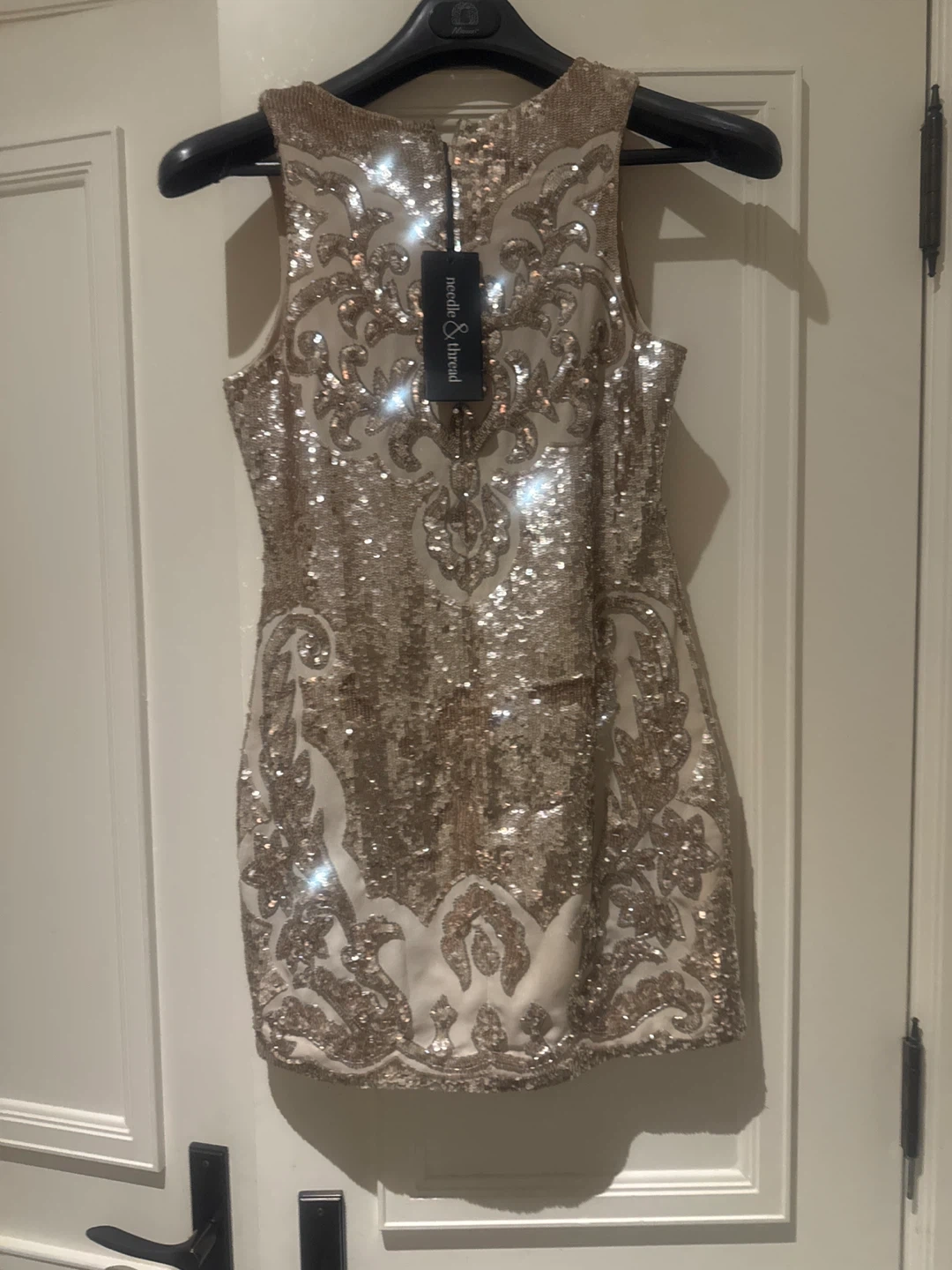 Gorgeous Needle & Thread sequin mini dress. Perfect for a night out or special occasion! The intricate sequin detailing and elegant design make it a real showstopper