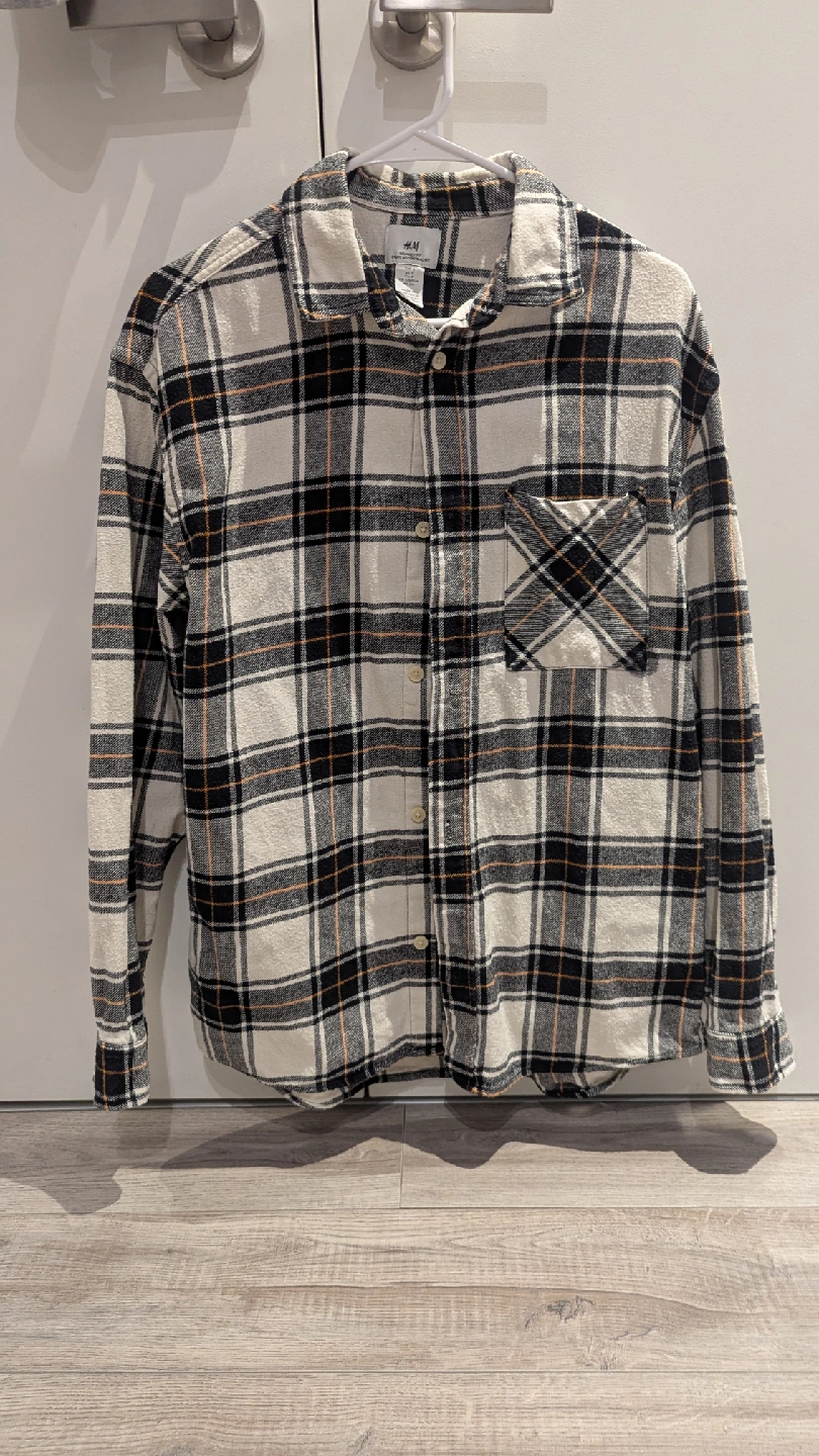 Cozy H&M flannel shirt in a classic plaid pattern! It's a size small and has a relaxed fit. Perfect for layering, material is thick so suits for fall/winter