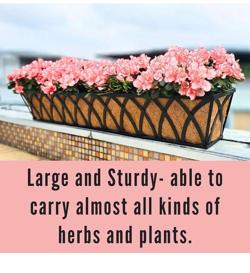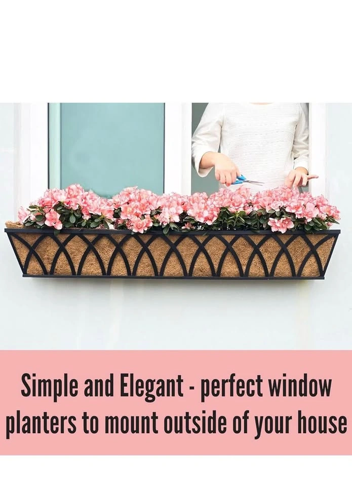 LaLaGreen Wall Planters (48", 2 Pack) Rectangular Black Metal Hanging Window Planter Box with Coco Liner, Flower Basket Plant Holder Attach House Outdoor Deck Railing Garden Patio Porch Balcony Fence