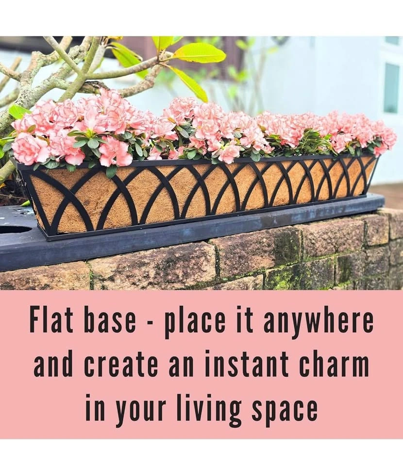 LaLaGreen Wall Planters (48", 2 Pack) Rectangular Black Metal Hanging Window Planter Box with Coco Liner, Flower Basket Plant Holder Attach House Outdoor Deck Railing Garden Patio Porch Balcony Fence