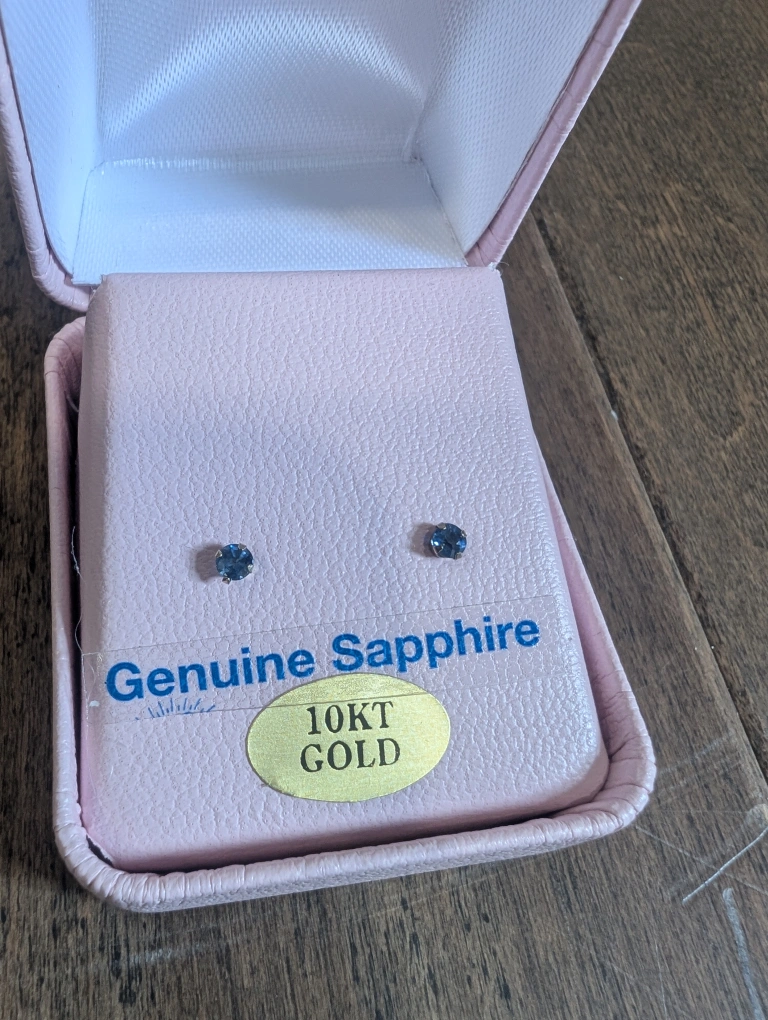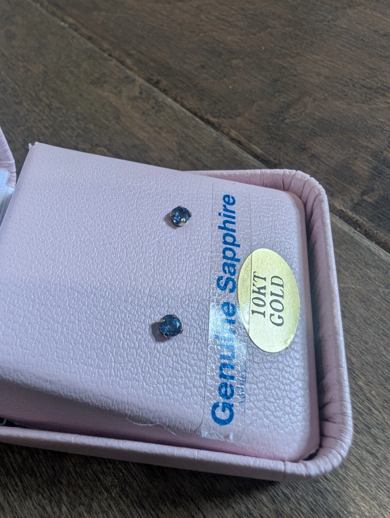 Brand new 10kt white gold natural blue sapphire earrings for sale. Natural genuine stone blue sapphires, 0.28ct karats, September birthstone, $90 FIRM. Jewelry, Gold, Diamond, Karat, Earrings, Carat, Appraisal, Gift, Present, Birthday, Anniversary, Valentine, Mothers Day, Christmas, Birthstone, Stone, Natural, Ring, Moissanite, Made in Canada, Studs, Necklace, Pendant, Canada, Sapphire