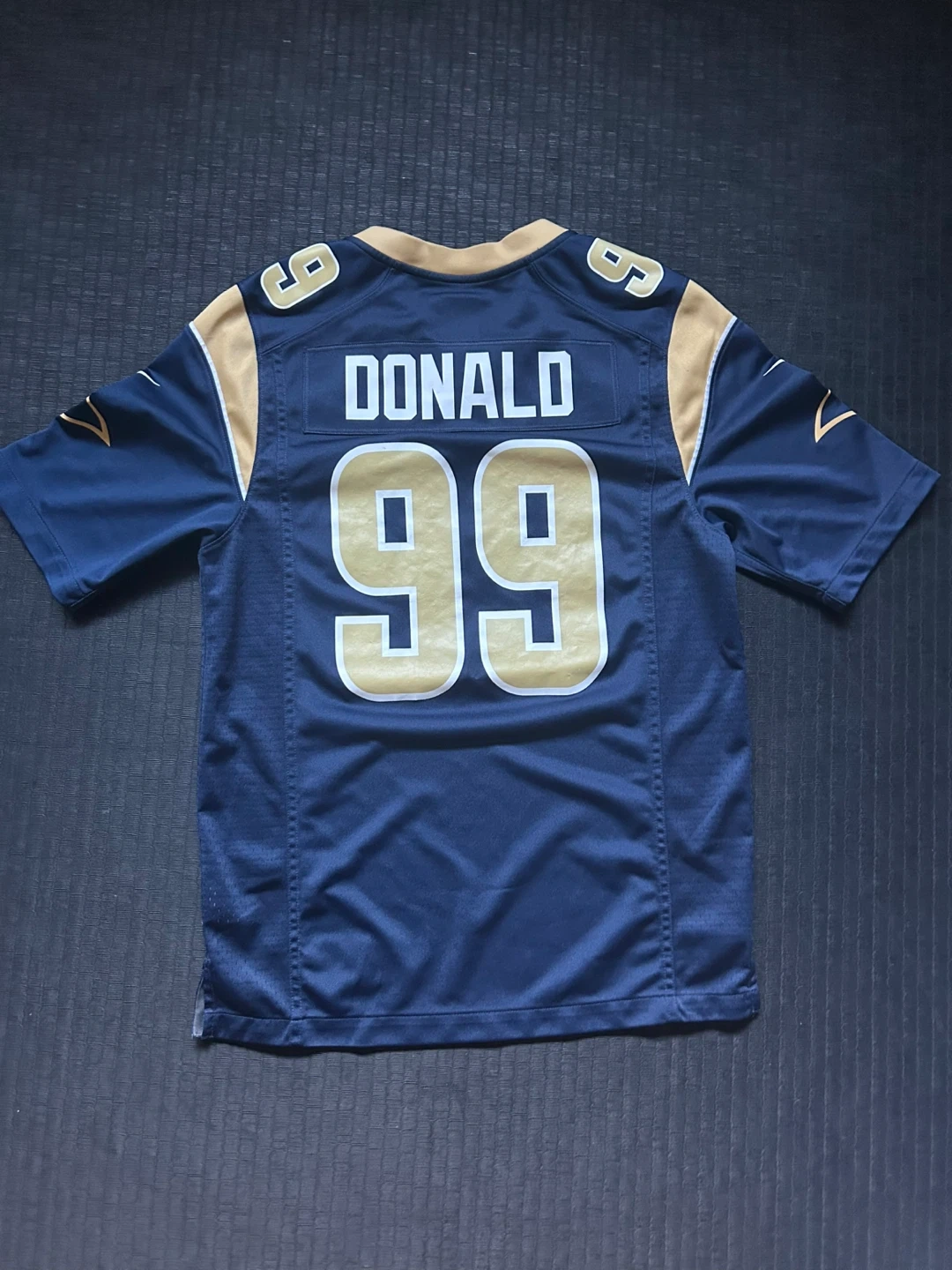 4Selling a Nike NFL Rams jersey with Donald's #99 on it! The jersey is in great condition and perfect for any Rams fan. It's a youth size, great for kids or smaller adults who want to show their support for the team