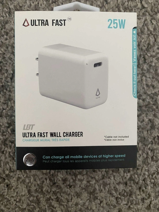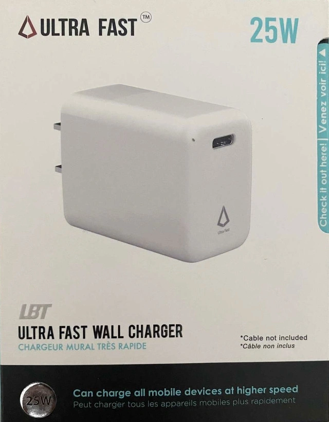 20Ensure efficient and reliable charging for your mobile devices with the LBT Ultra Fast Wall Charger. With a robust 25W power output, this charger is designed to deliver high-speed charging across a wide range of smartphones and tablets. Product Features: • 25W ultra-fast charging capability • Compatible with all mobile devices • Compact and travel-friendly design • *Please note: Cable is not included Included: • LBT Ultra Fast Wall Charger (white) This item is brand new and remains sealed in its original packaging.