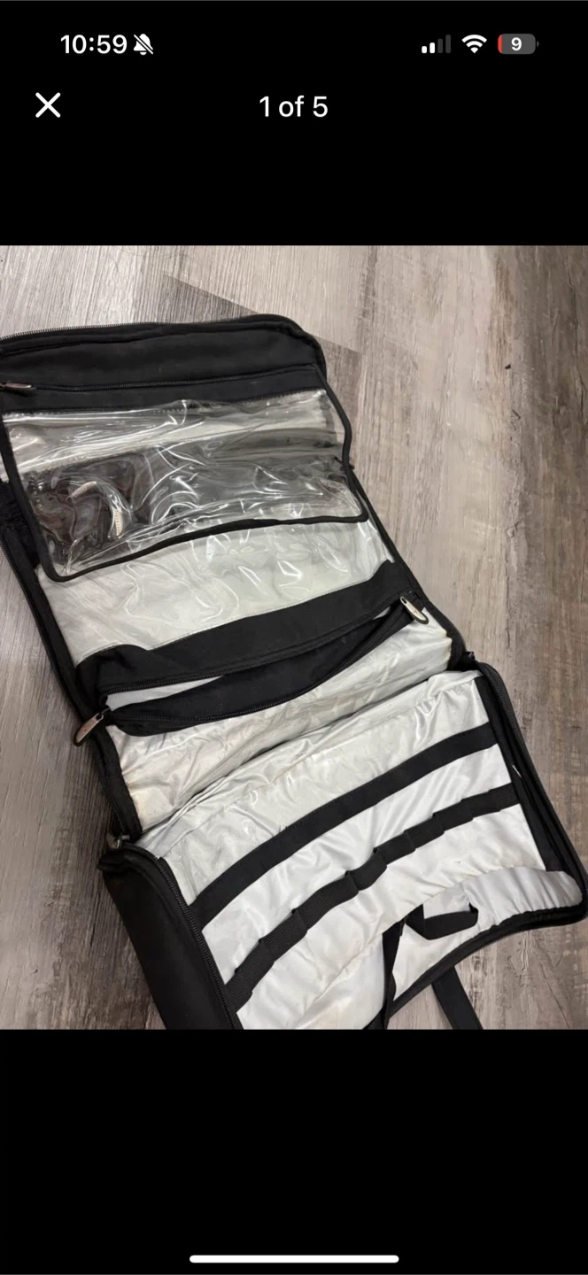 Ricardo Beverly Hills toiletry bag in good condition! It's perfect for travel and keeping your toiletries organized. It features multiple compartments and a convenient hanging hook for easy access