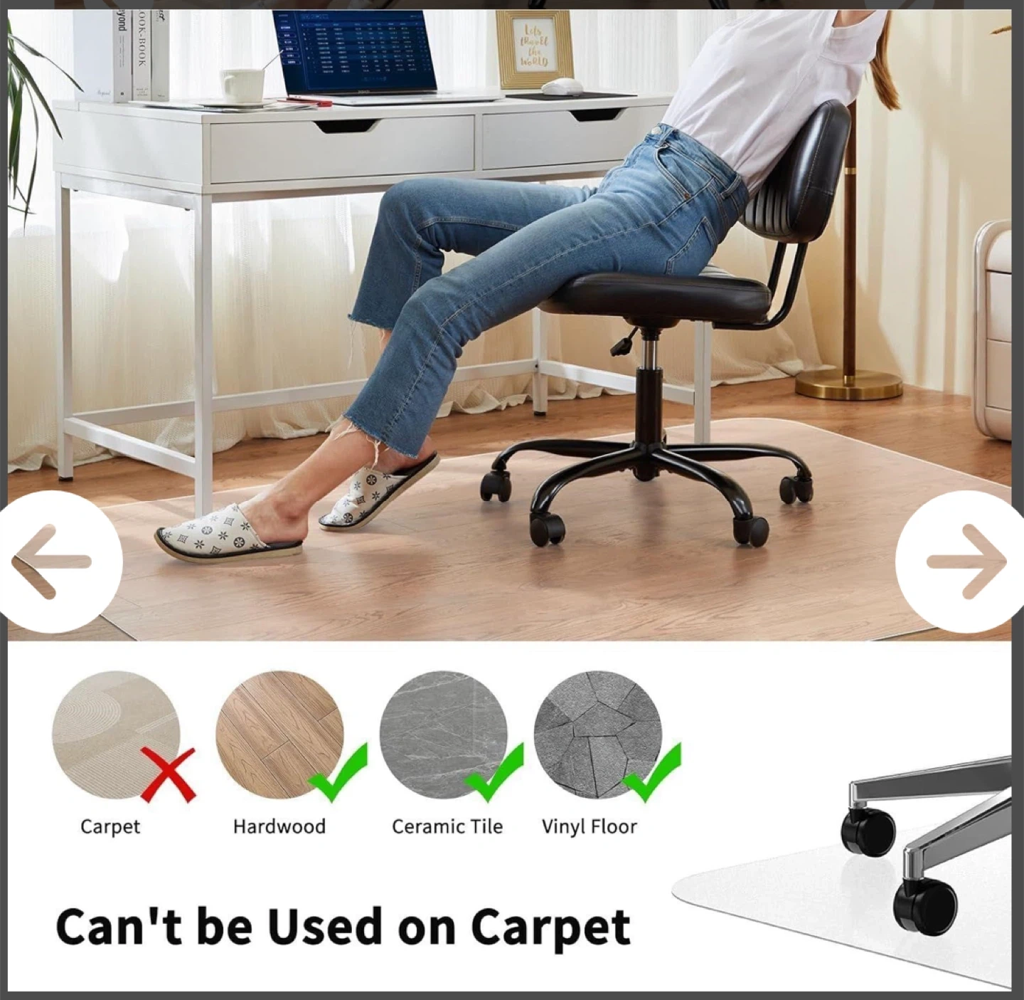 Brand: Wasjoye Color: clear Measurement: 36×55 cm. WASJOYE Chair Mat for Hardwood Tile Floor, 36'' x 55" Thicken PVC Floor Chair Mat with Non-Slip Frosted Back for Home Office Computer Rolling Chair, Easy Expanded