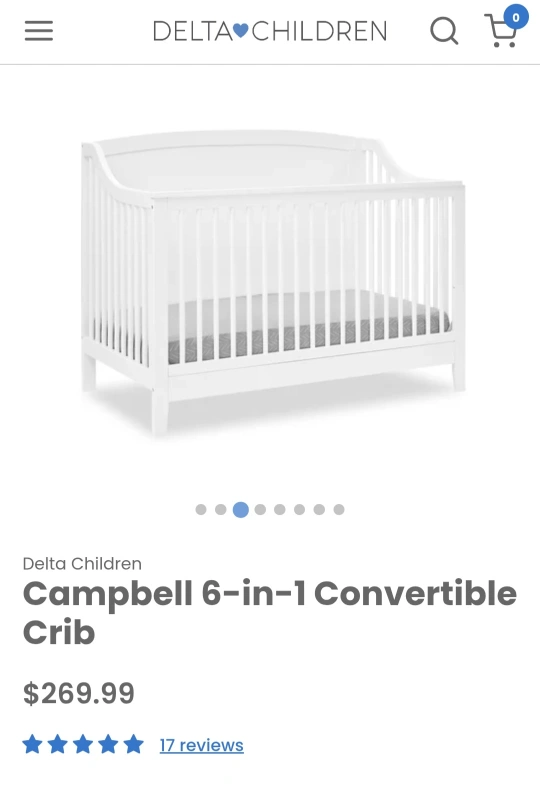 Selling a Delta Children Campbell 6-in-1 Convertible Crib. Versatile crib can convert into multiple bed configurations as your child grows. Originally bought for $269.99.
