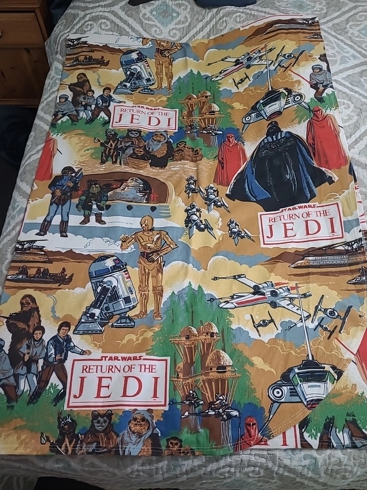 Awesome Vintage Star Wars Return of the Jedi Twin Single Size Bedspread - Osmond Montreal 70% Viscose 30% Polyester 108" x 74" in Size Excellent Condition no rips no stains no tears Please See all pictures Please See all my Other Listings, Bundle & Save for a Better Deal! Located in Bradford, May be able to Meet, Shipping Offered at Buyers Expense, Please contact me for more Info & to make arrangements, sorry no holds without an ET, Thank you so much for Looking!