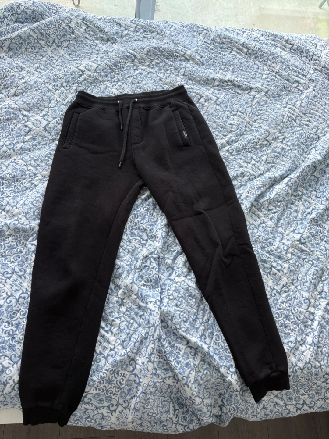 Selling a black sweatpant. They're in great shape and super comfy for lounging around the house or running errands. Feel free to ask any questions!