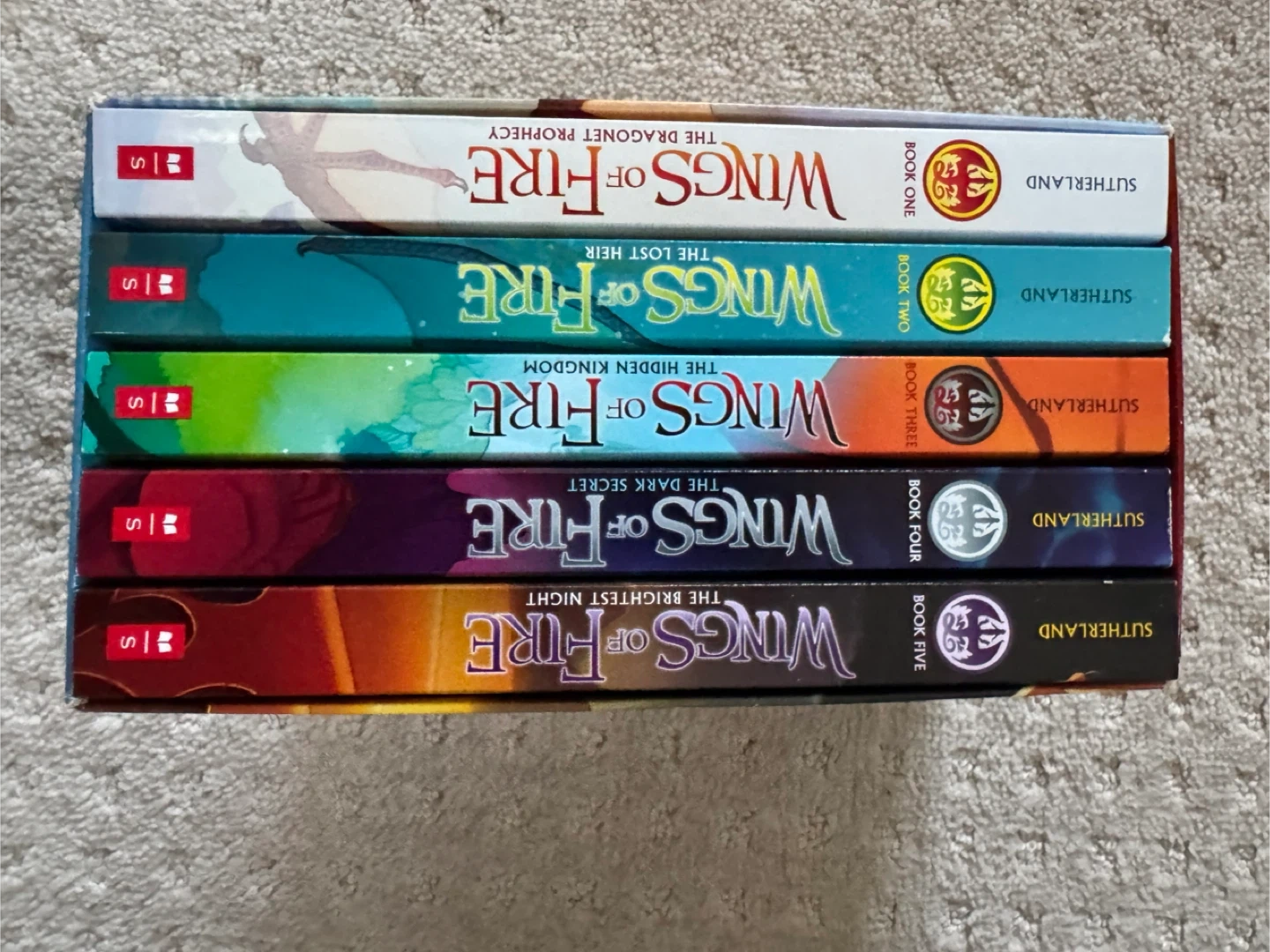 Selling the first five books in the Wings of Fire series by Tui T. Sutherland! They come in a box set designed by Phil Falco. Originally bought for $49.95 CAD