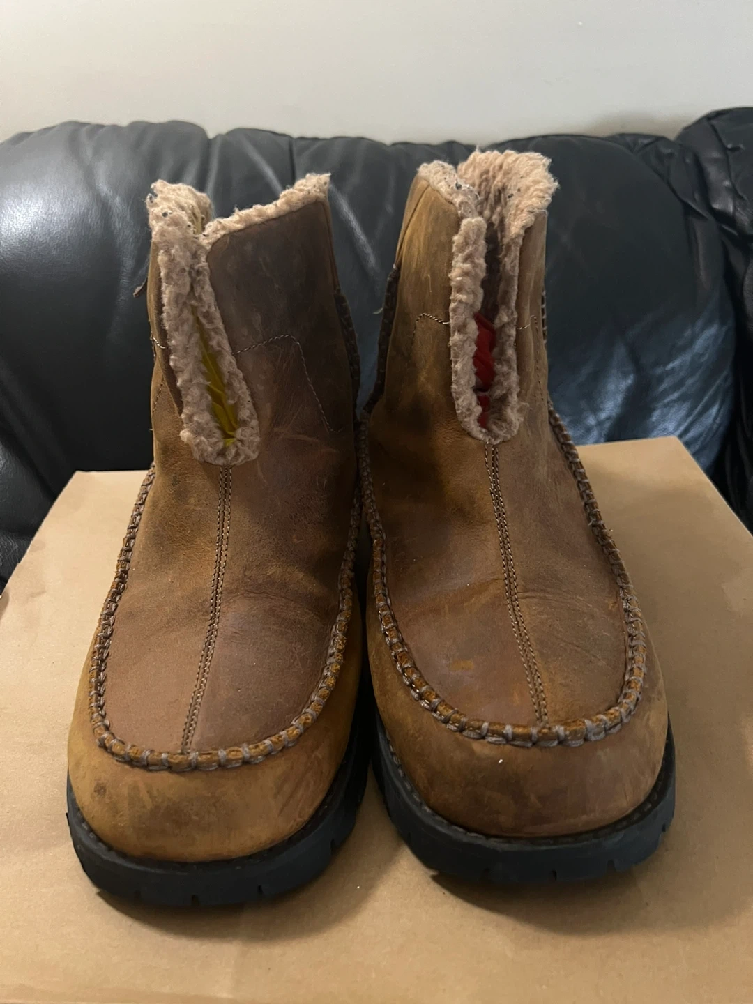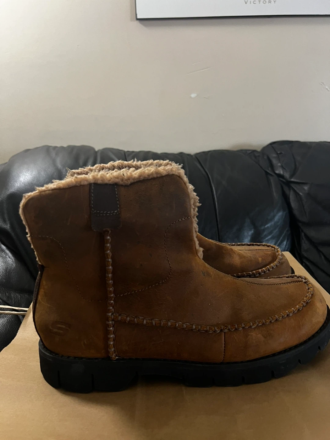 35These Skechers boots are perfect for keeping your feet warm and cozy! They feature a brown suede exterior with a soft, furry lining. Great for everyday wear during the colder months!