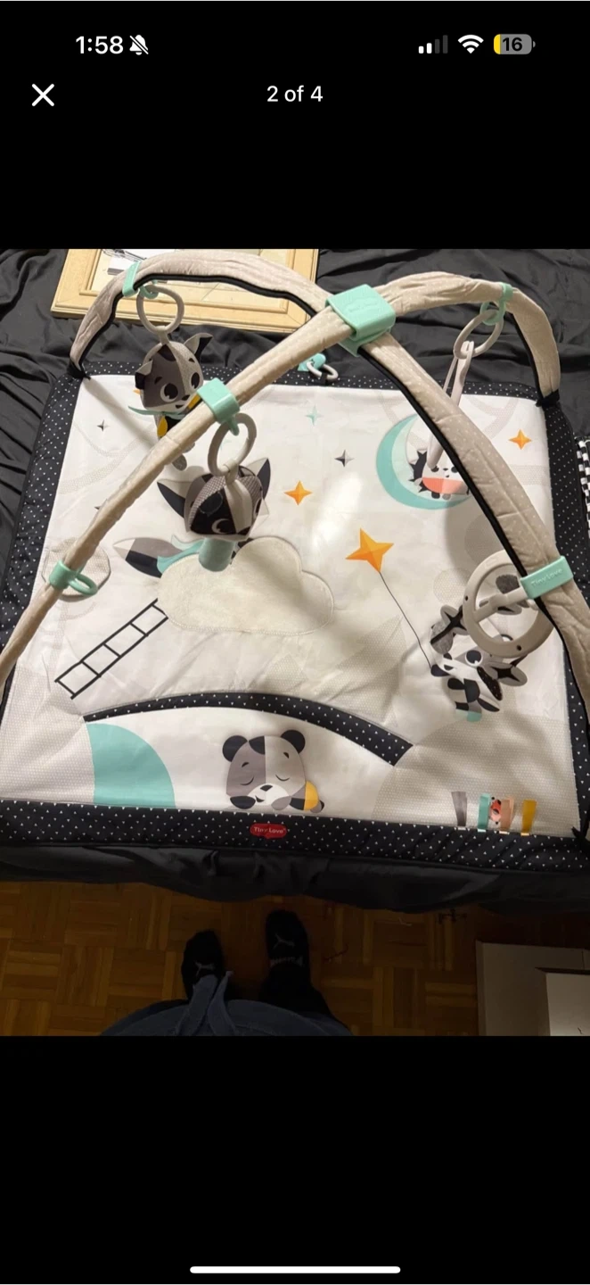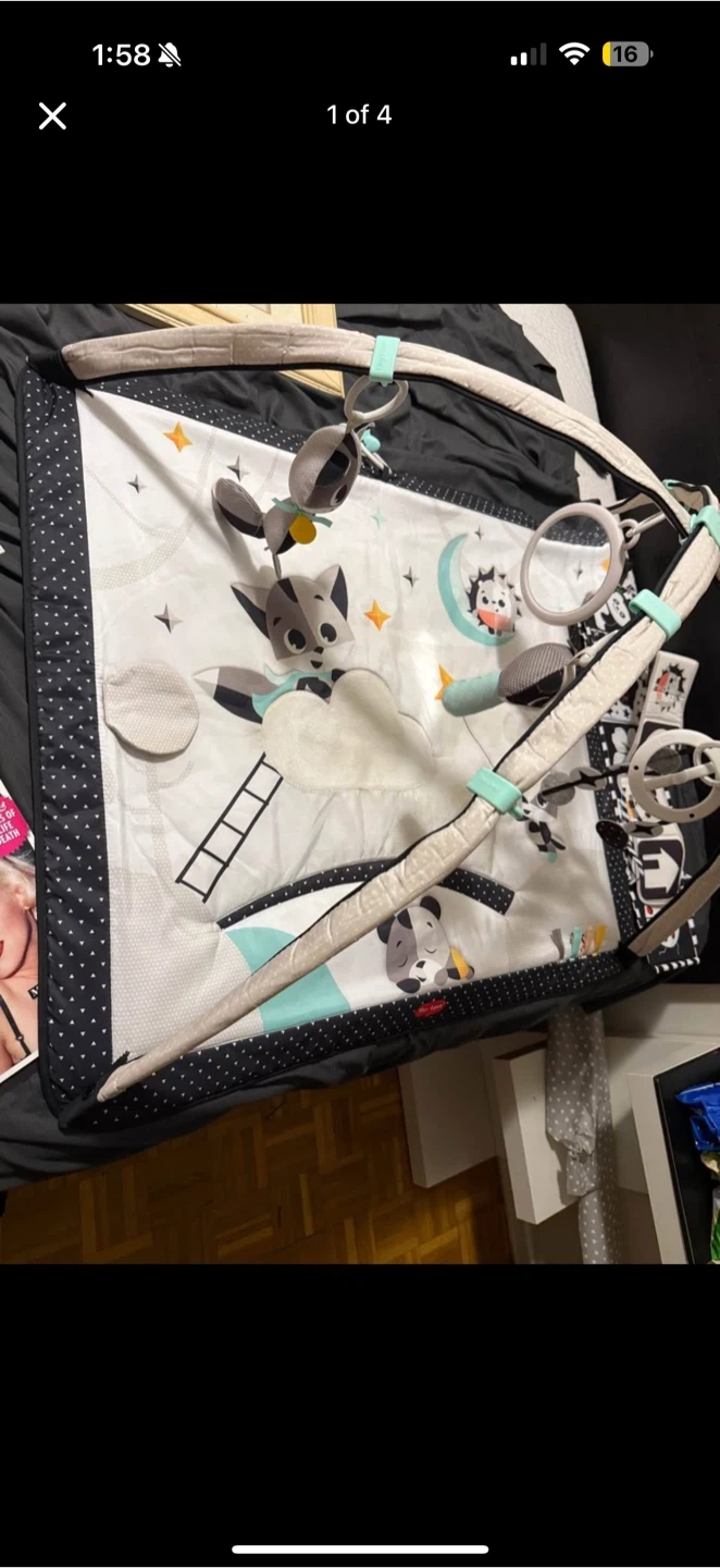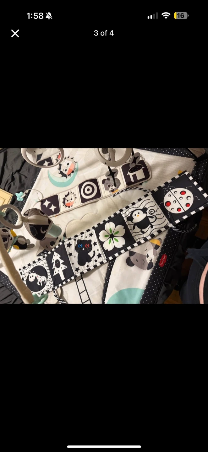 28Selling a Tiny Love Gymini play mat in black and white! It's in great shape and perfect for tummy time and early development. Comes with all the original toys and accessories to keep your little one entertained.