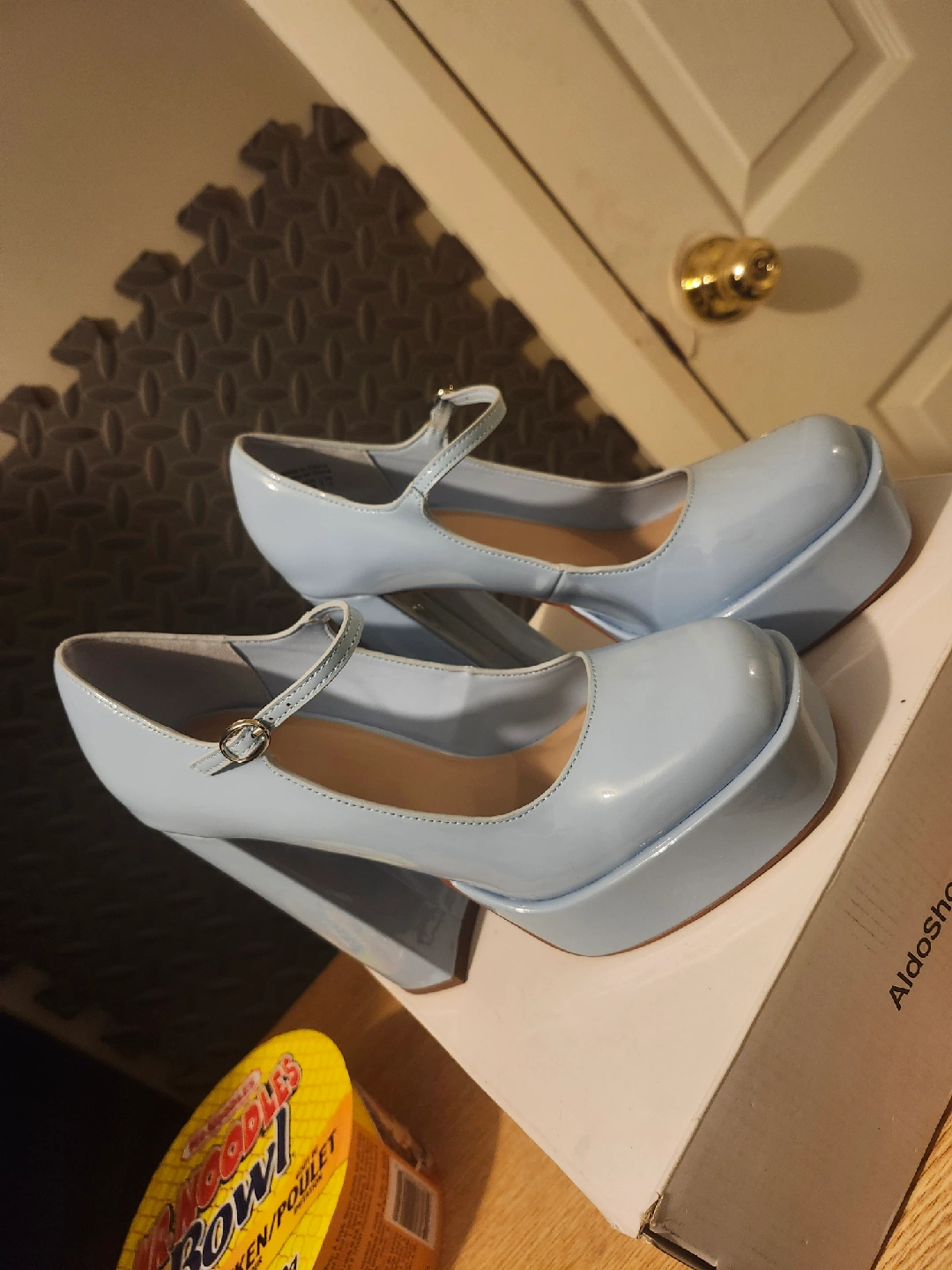 Selling a pair of Aldo Anjie platform heels in a lovely light blue colour! These are a women's size 9 US. They come with the original box. only worn once for photos