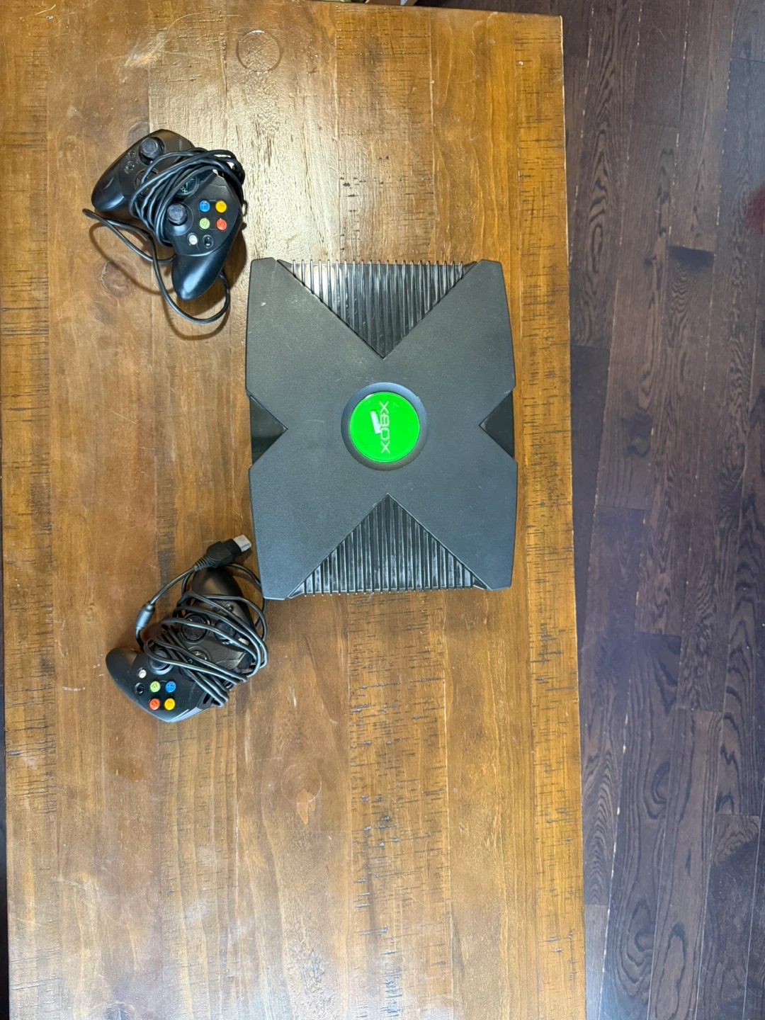 Selling an original Xbox console in used condition. Comes with two controllers for some retro gaming fun! Perfect for reliving the classics or discovering them for the first time