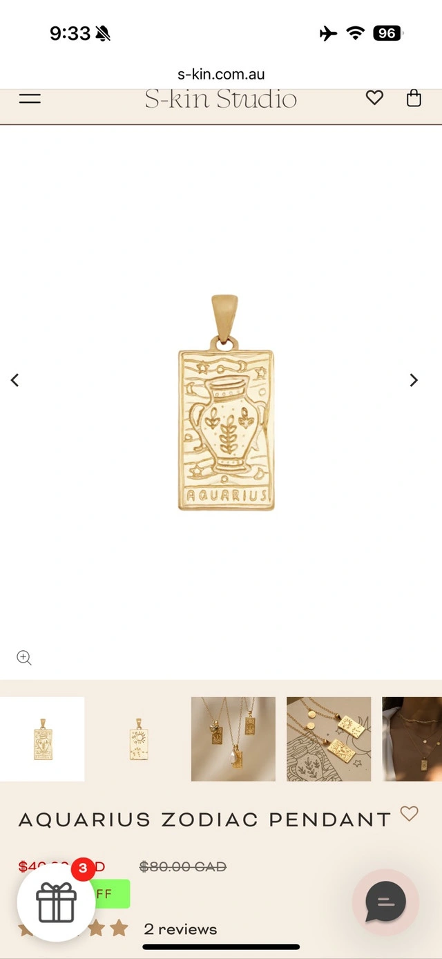 9K Gold Filled Aquarius pendant designed by s-kin studio (Australian Jewellery Brand). Never been worn. Selling for $40. Pick up near Square One mall.