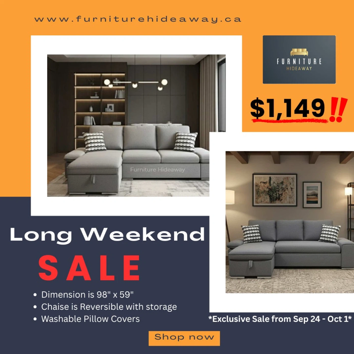 🎉It’s Long Weekend Sale time! Brighten up your home with our exclusive furniture deals starting today. Hurry, supplies are limited— visit our showroom to grab your favorites!🛋️✨