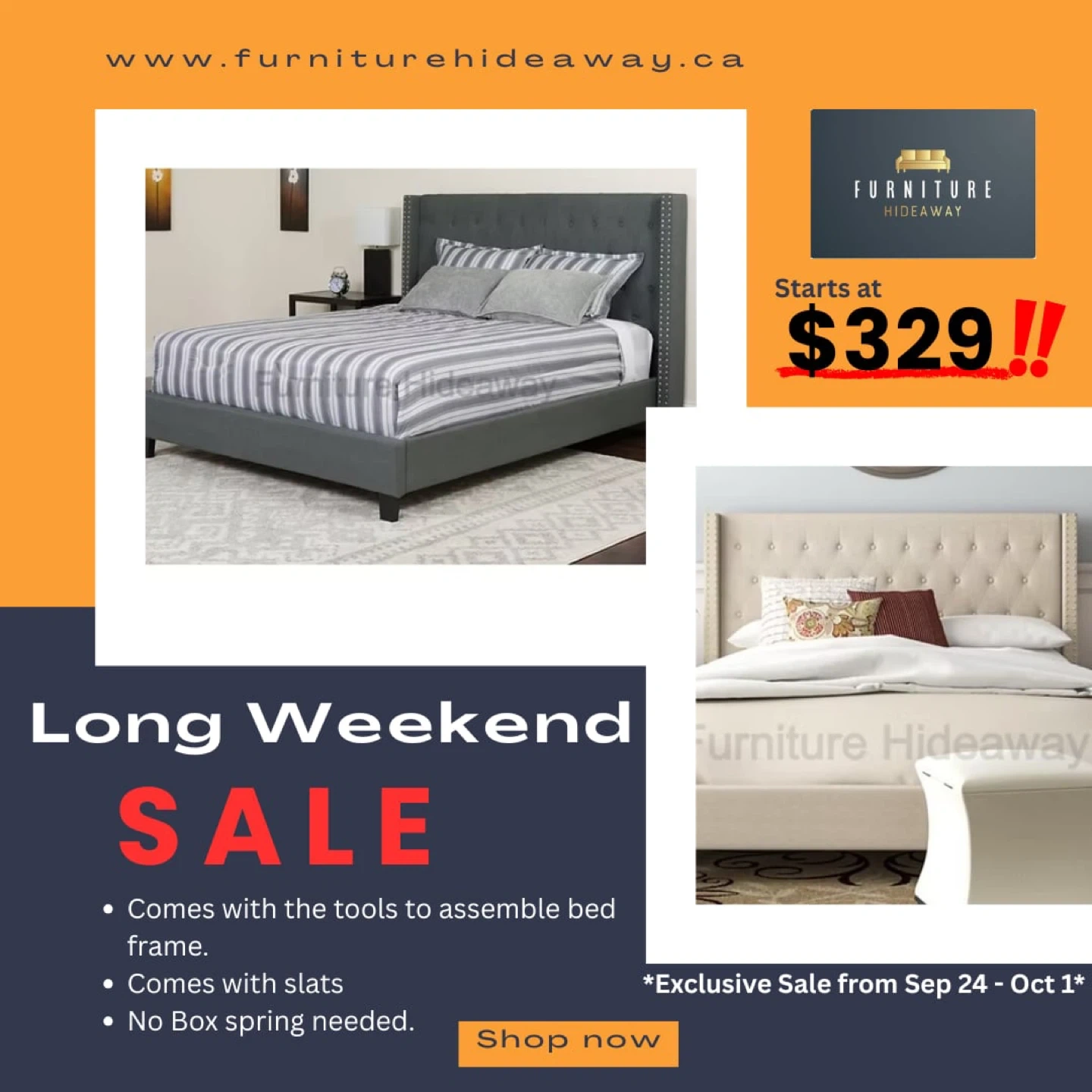 Bed frame starts at $279