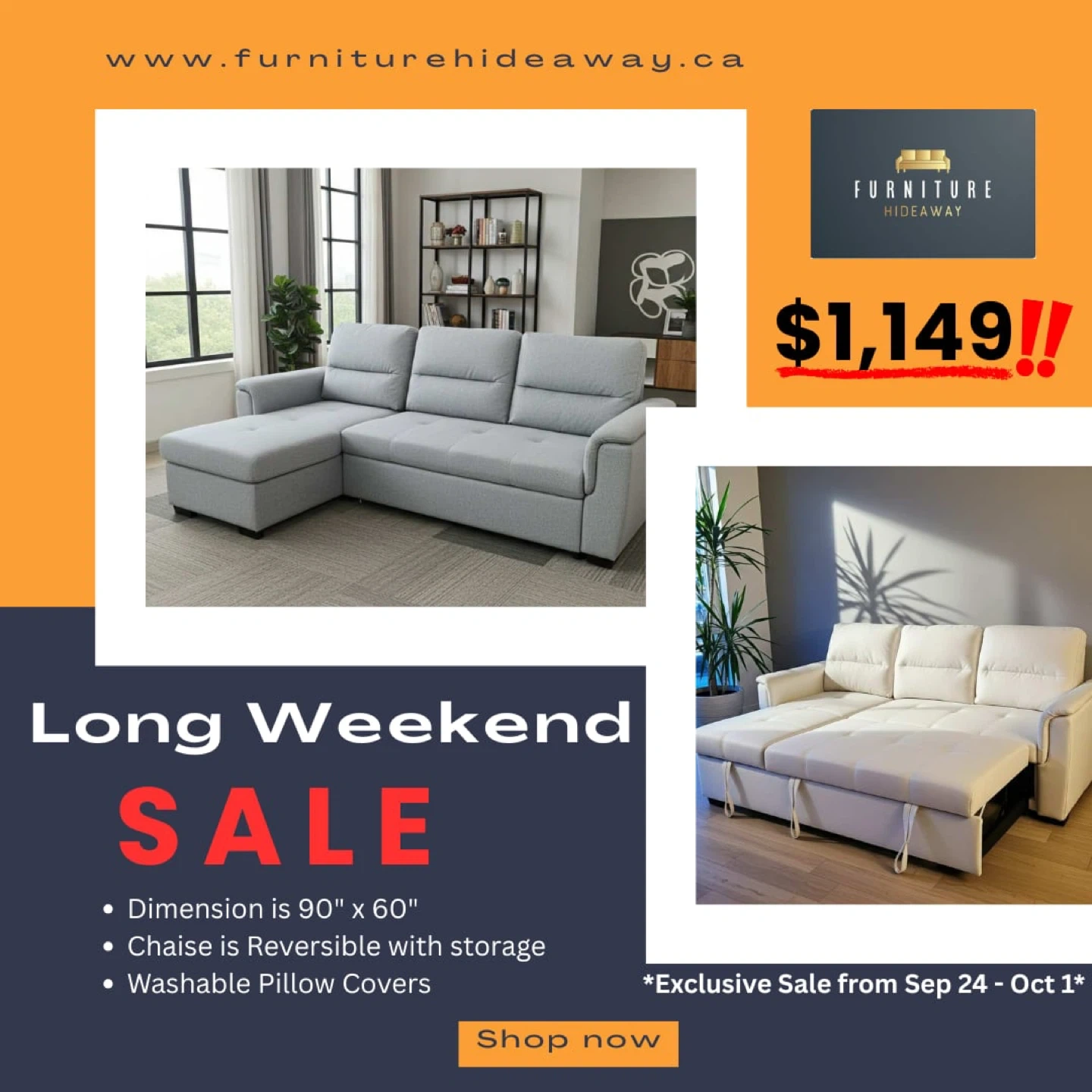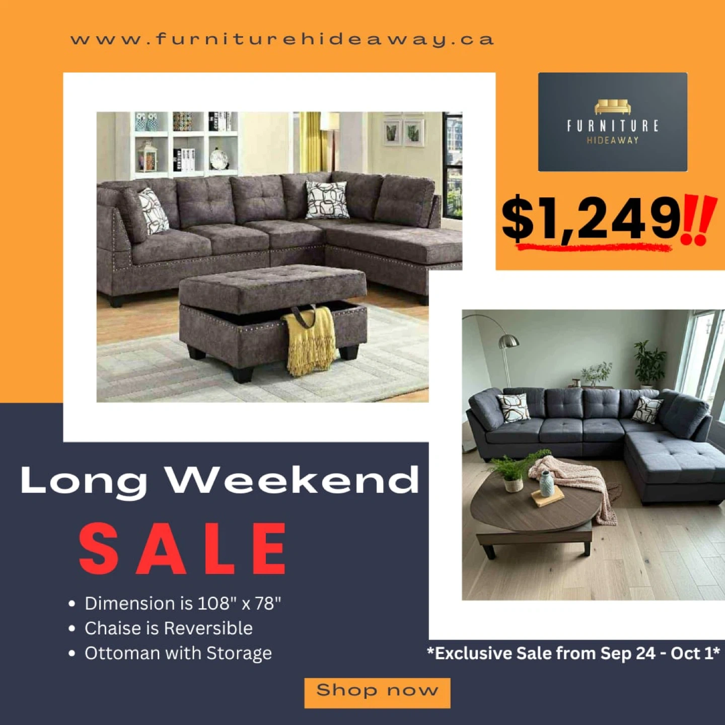 🎉It’s Long Weekend Sale time! Brighten up your home with our exclusive furniture deals starting today. Hurry, supplies are limited— visit our showroom to grab your favorites!🛋️✨