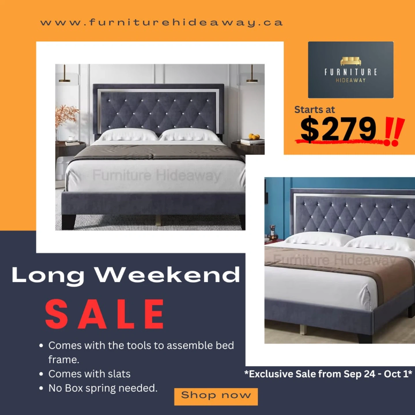 Bed frame starts at $279