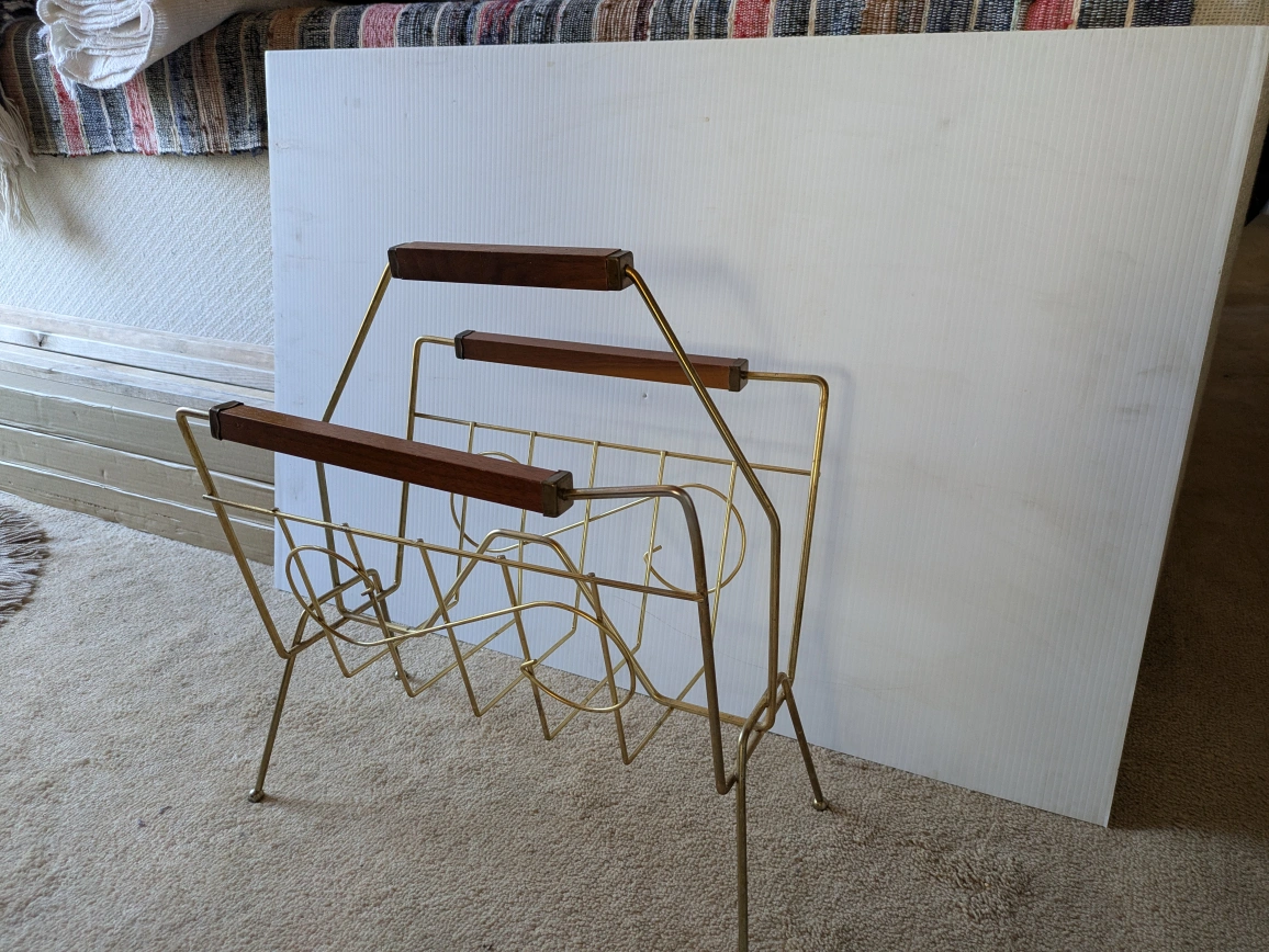 Mid Century Modern 1950s wire and wood record / magazine Holder . in great condition . cash payment please , thanks for looking .