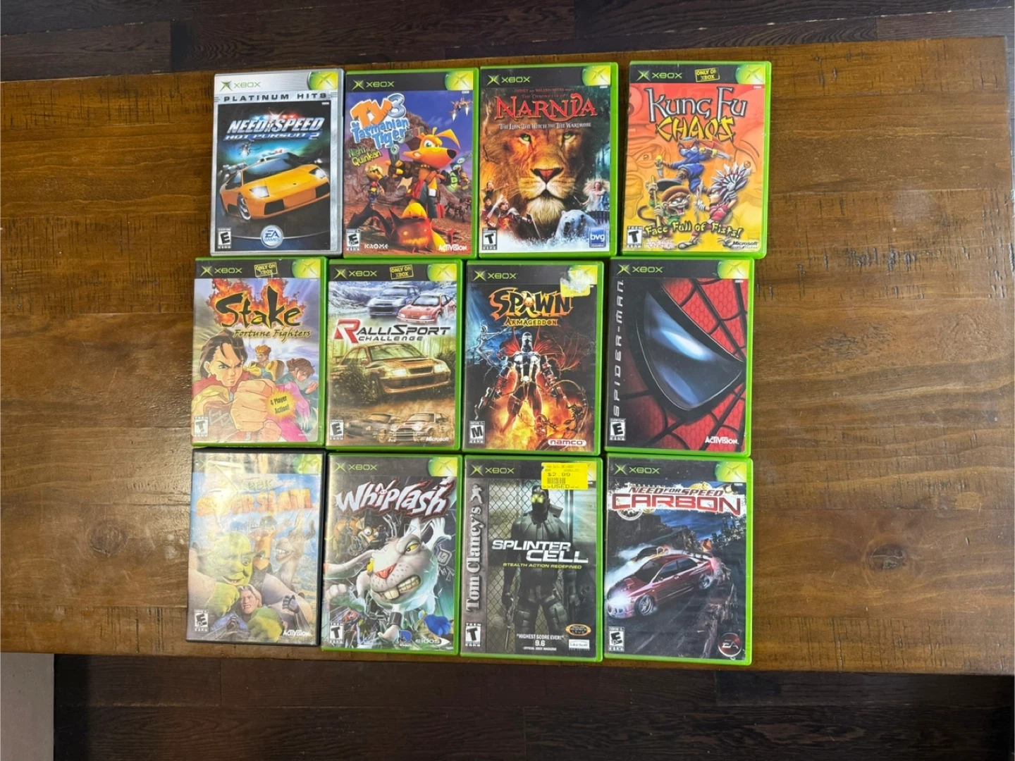 Selling a bundle of Xbox games! Need for speed hot pursuit 2 15$ Stake fortune fighters 15$ Shrek super slam 15$ Ty the tasmanian tiger 10$ Rally sport challenge 10$ Whiplash 20$ Narnia 5$ Spawn armageddon 30$ Splinter cell 15$ Kung fu chaos 35$ Spiderman 10$ Need for speed carbon 10$