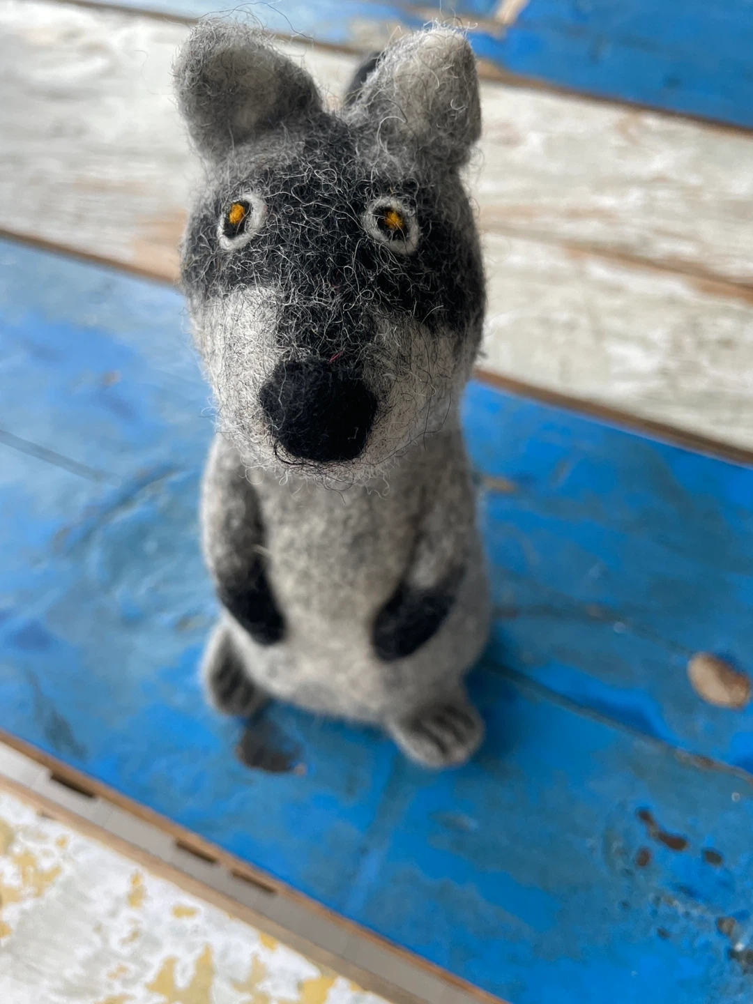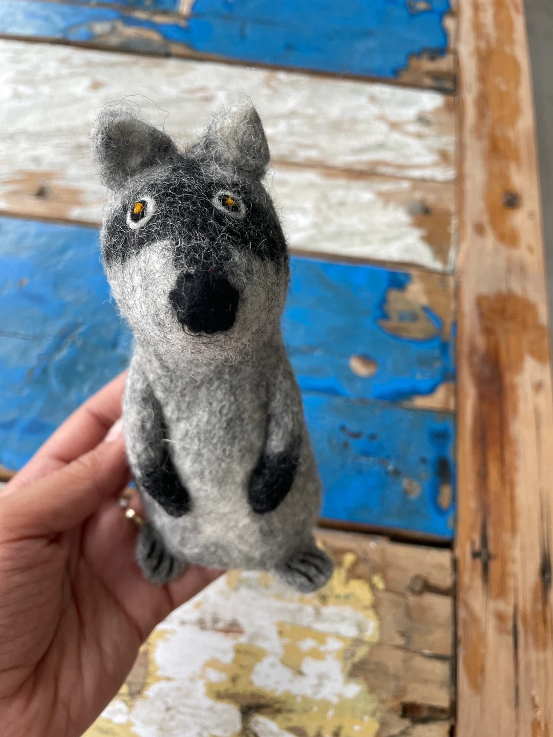 399This adorable handmade felted raccoon is looking for a new home! It's a unique and charming piece, perfect for adding a touch of whimsy to any space. It is in great condition and ready to be loved