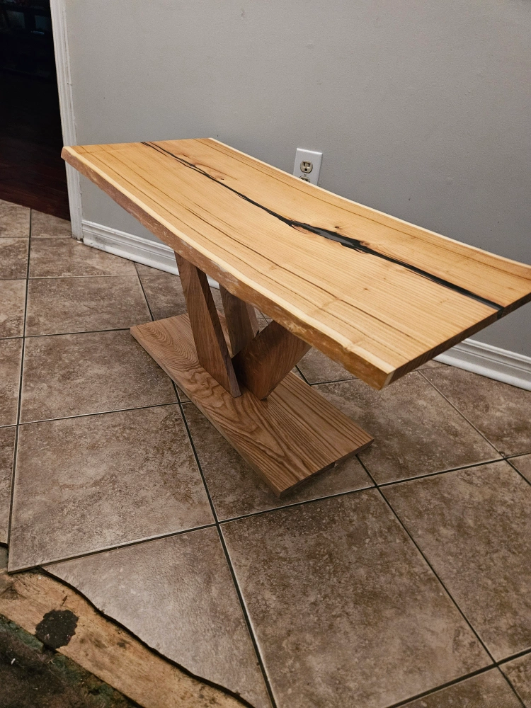 Selling a unique, handmade wooden coffee table! It features a beautiful wood grain pattern and a modern design. The table is sturdy and would make a great addition to any room. mulberry top ash legs