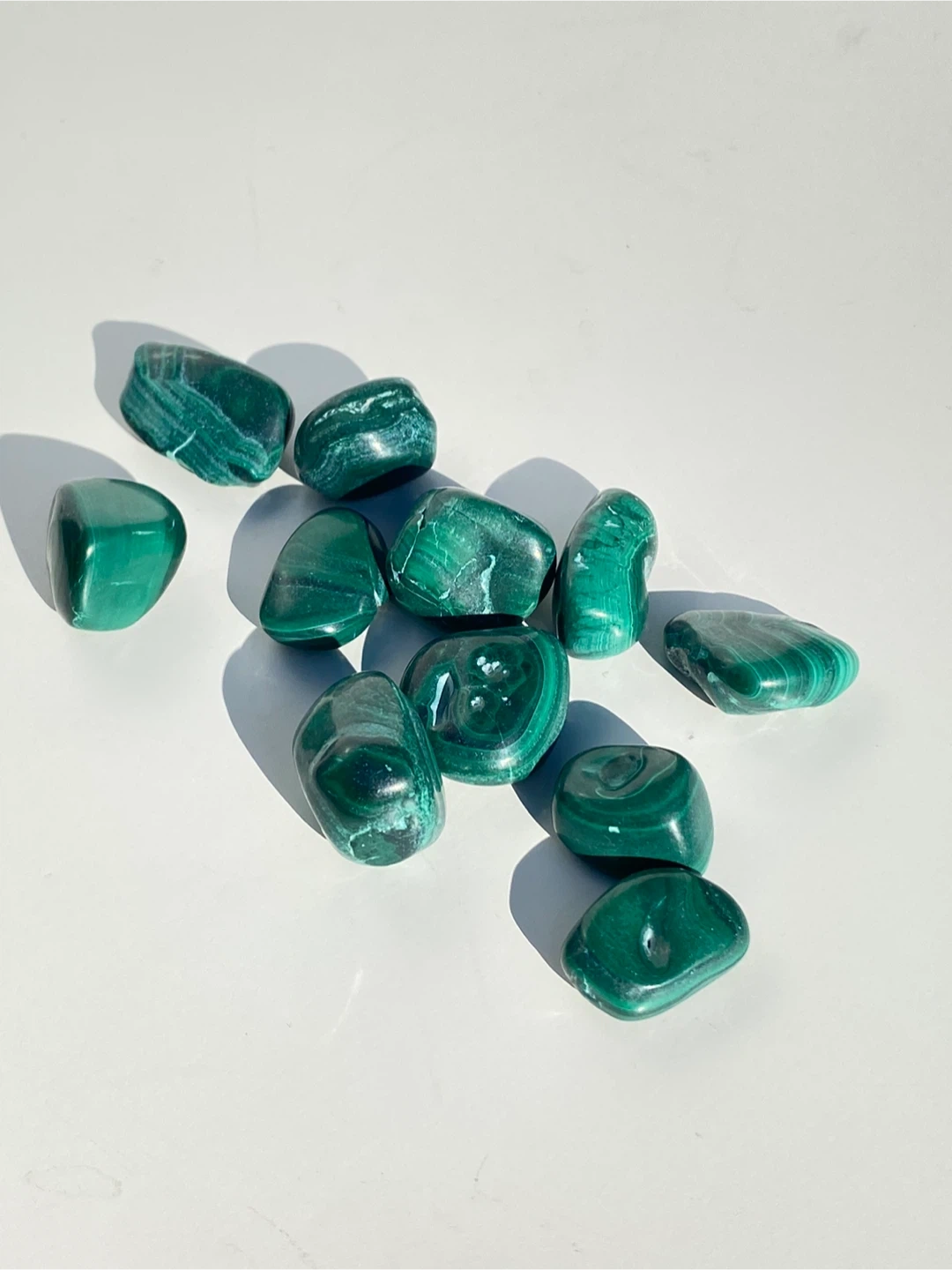 31$6 EACH Rare malachite from Congo, each piece has unique patterning and gorgeous green colours. 10-30 grams will be intuitively selected for you. Tumbles are the perfect size for your pocket or purse! Fully polished crystal.