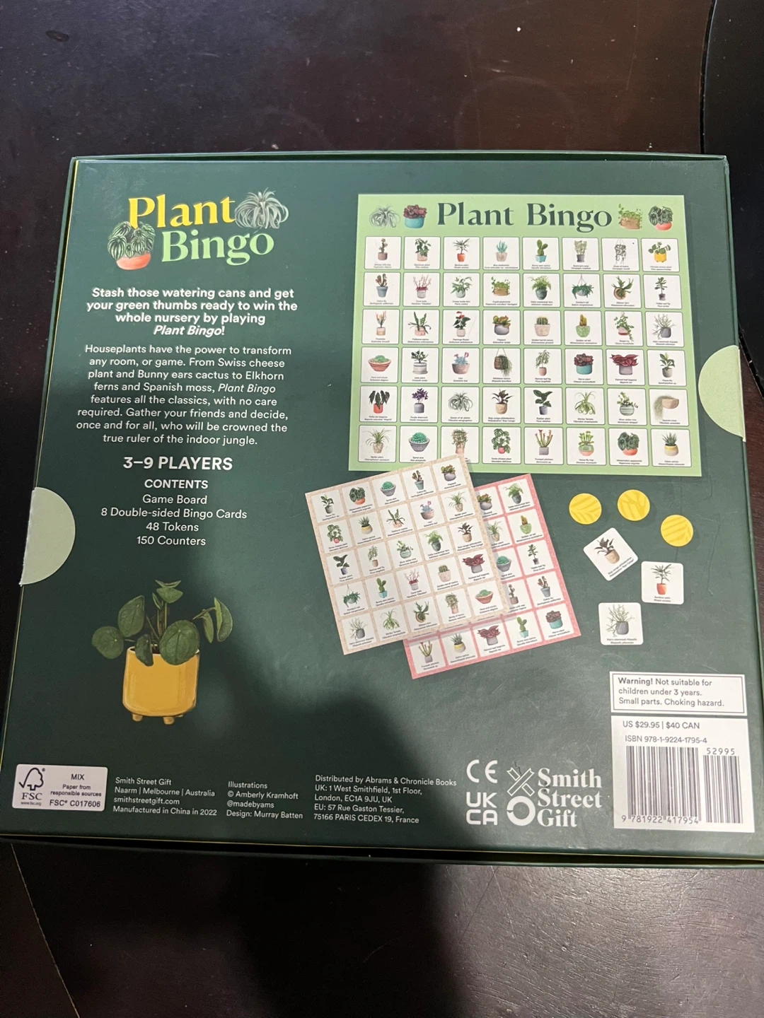 Includes: Game Board, 8 Double-Sided Bingo Cards, 48 Tokens, 150 Counters.
