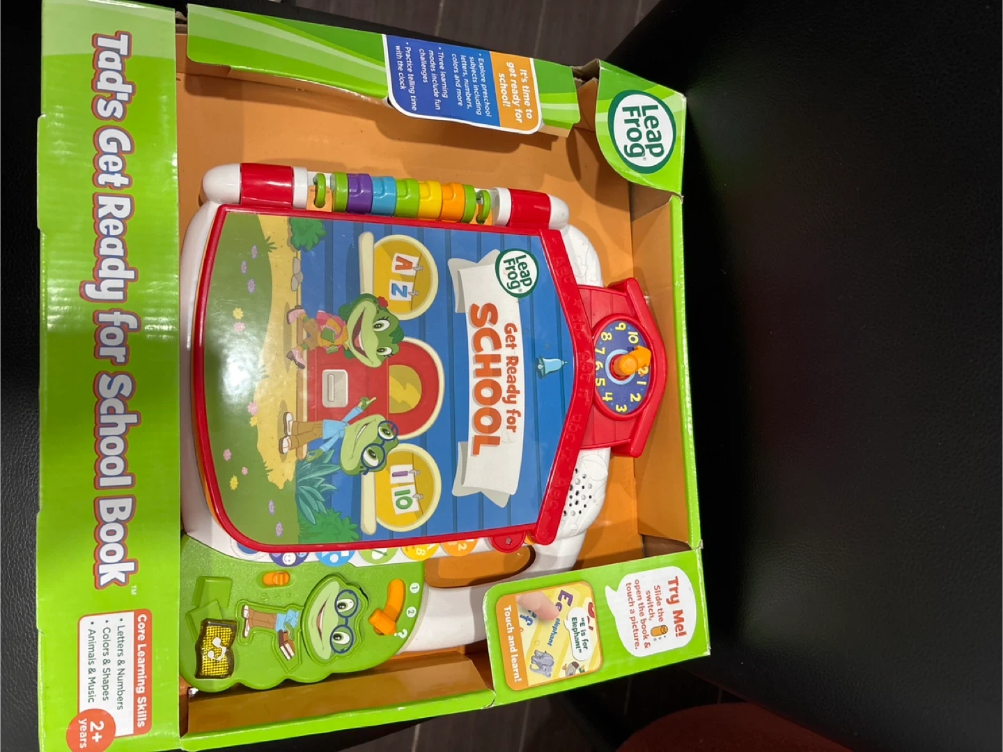 LeapFrog Tad's Get Ready for School Book is perfect for kids aged 2 and up! It helps explore preschool subjects like letters, numbers, colours and more. There are three learning modes with fun challenges, and it even helps with learning to tell time with the clock. Slide the switch, open the book, and touch a picture to learn!