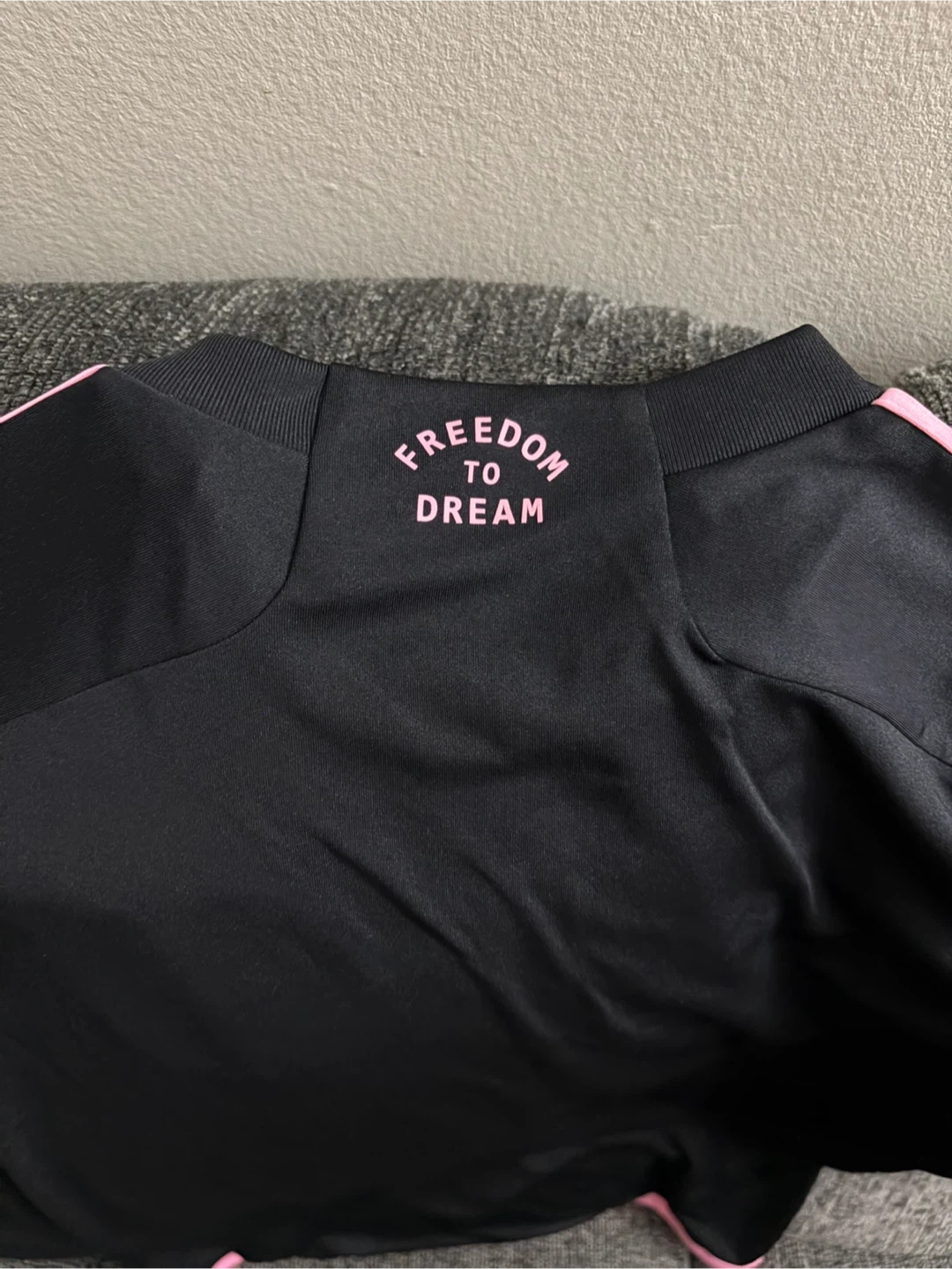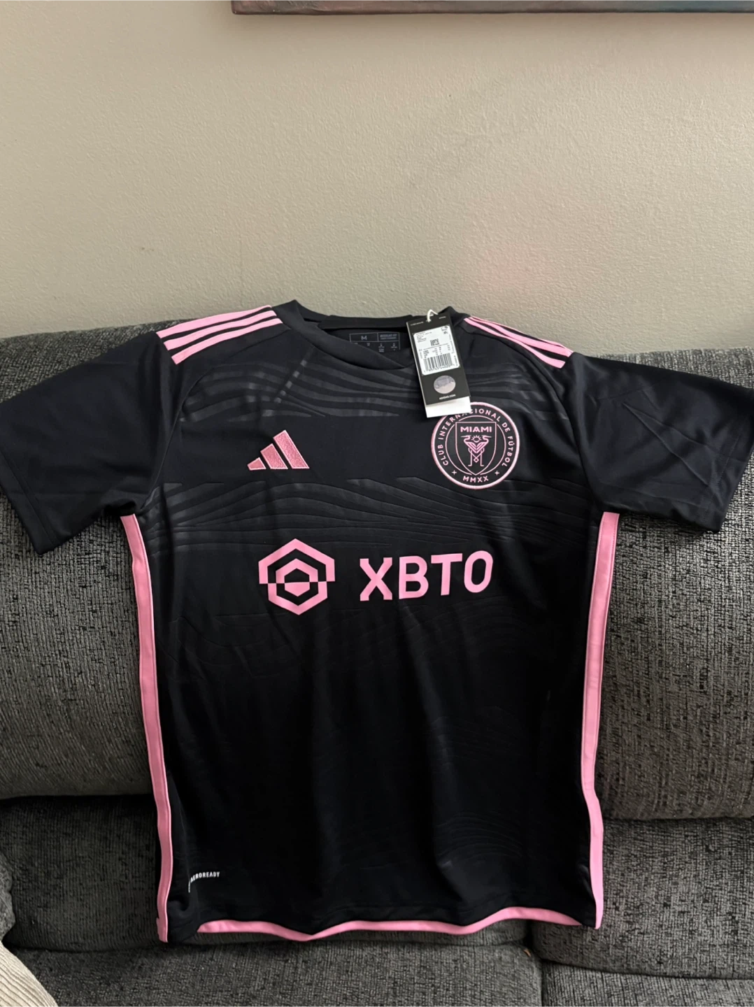 Selling a brand new with tags Adidas Miami CF 2023 jersey in size M! It's black with pink accents and features the XBTO logo. AEROREADY technology will keep you cool and comfortable. 'Freedom to Dream' is printed on the back of the neck Women’s medium