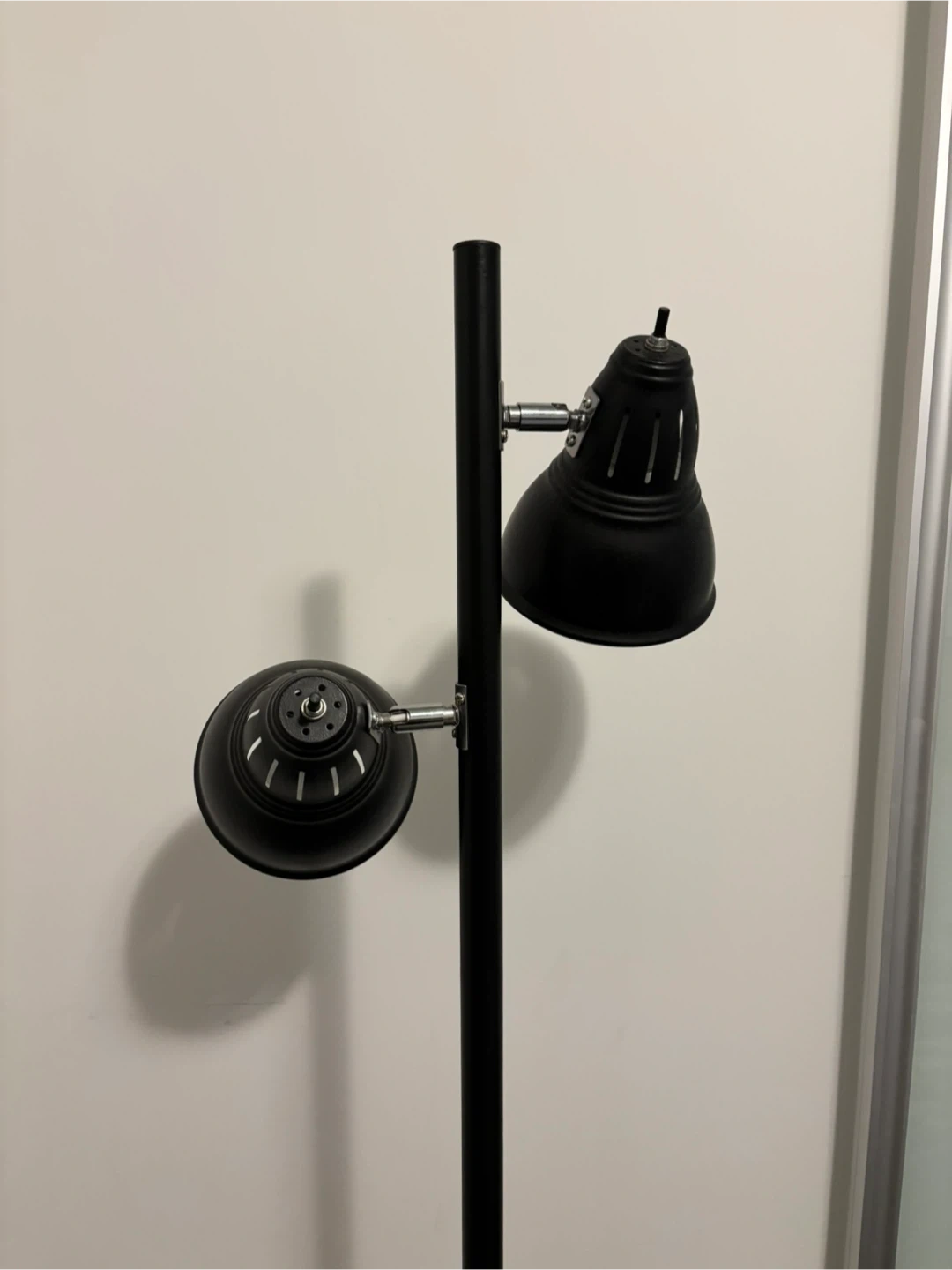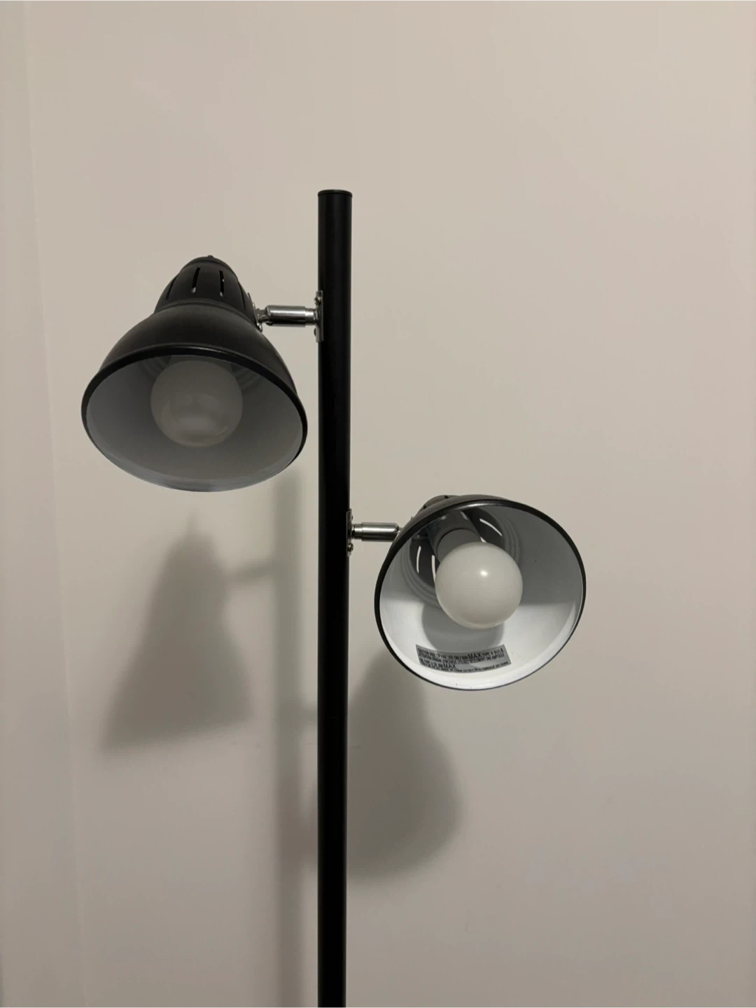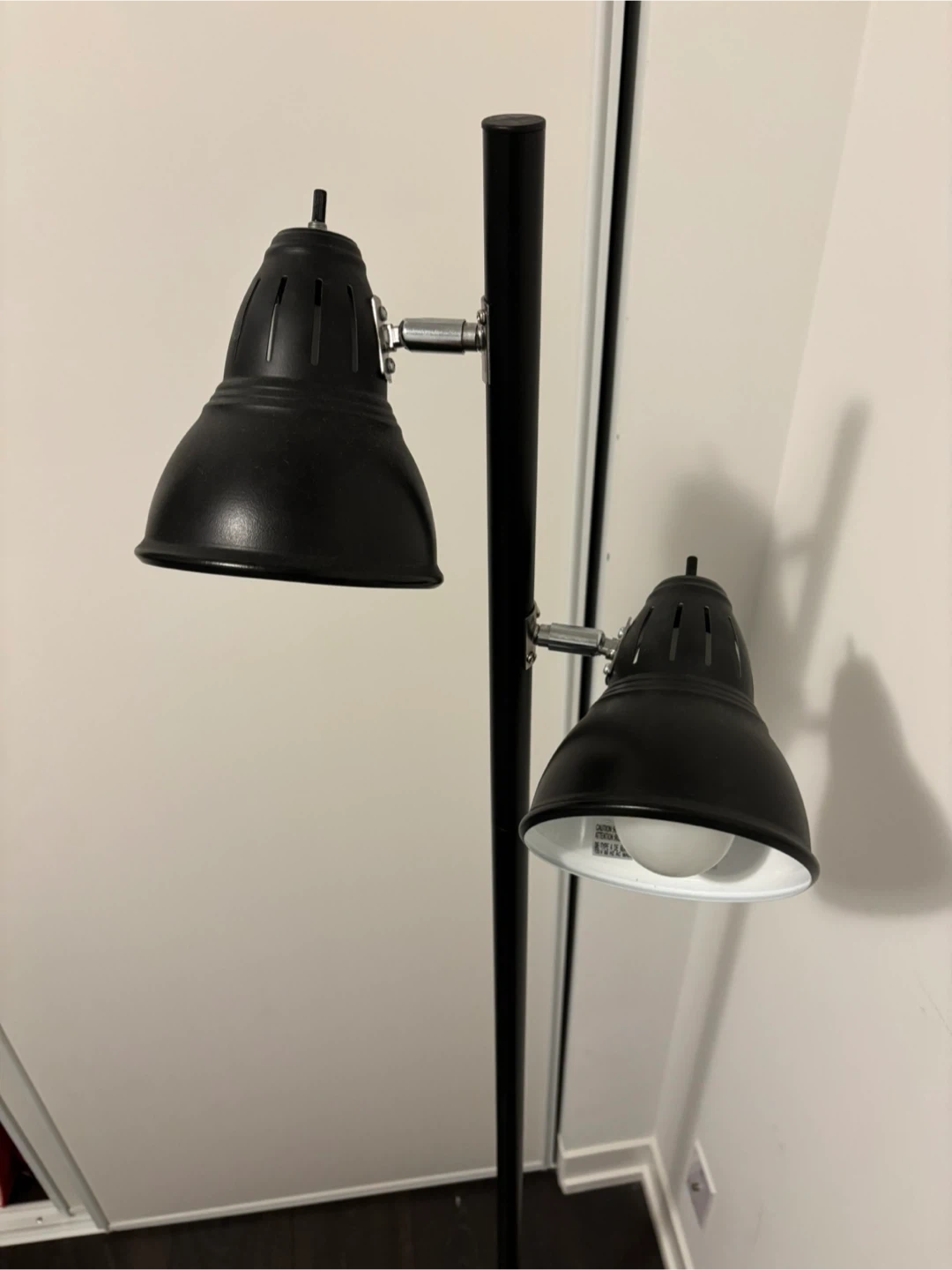 Selling a black floor lamp that's in great shape! It features adjustable lights, so you can direct the light where you need it. Perfect for a reading book or living room