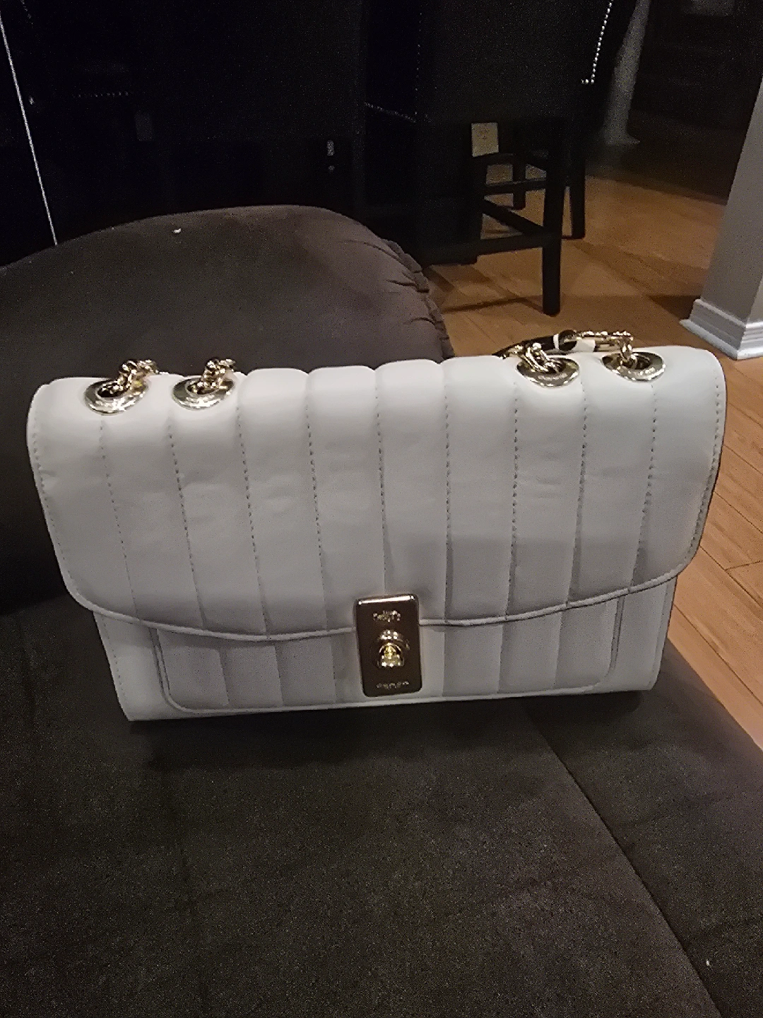 60Selling a stylish Coach shoulder bag in white leather! It's in great condition and perfect for everyday use or a night out. The quilted design and gold hardware add a touch of elegance