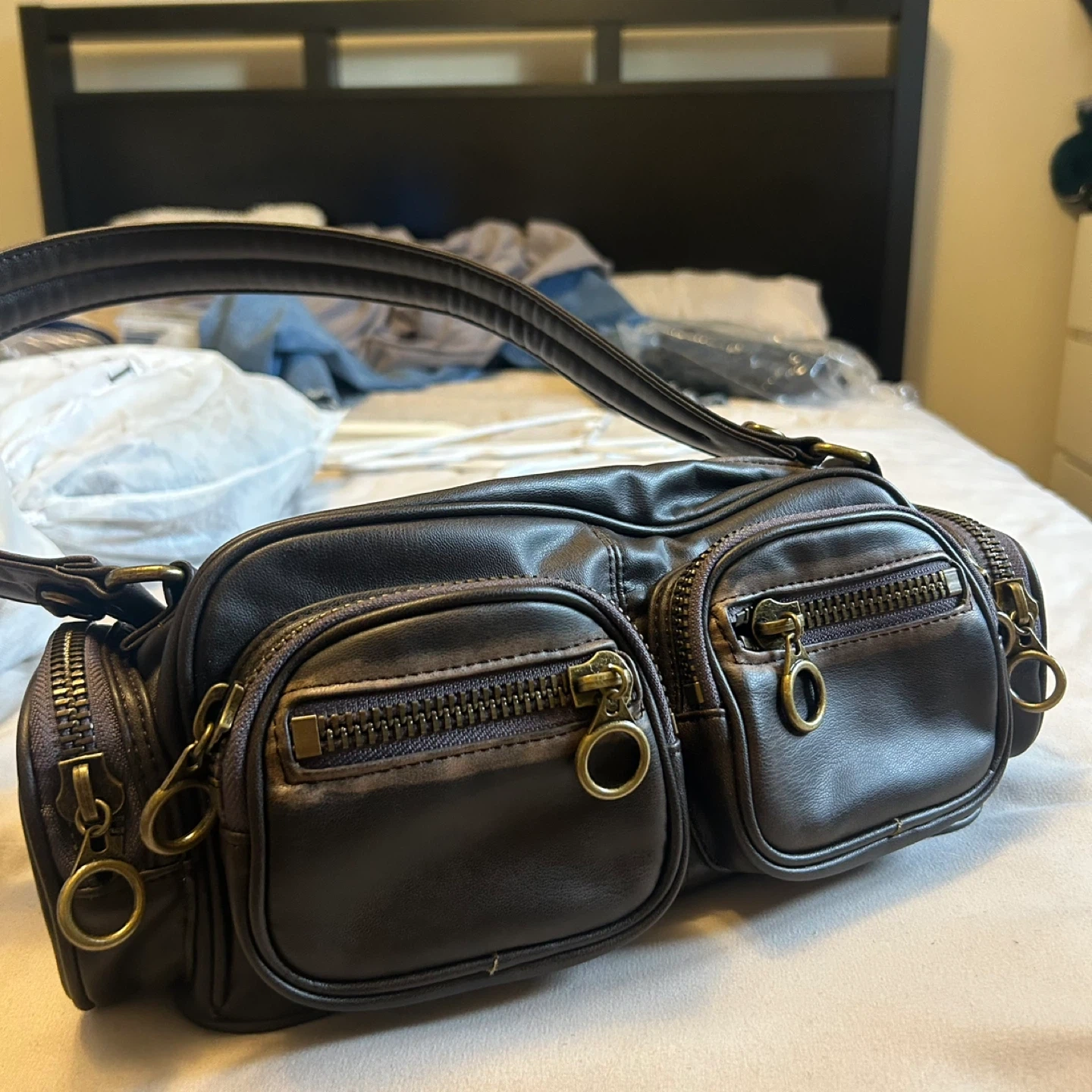 109This is a cute brown shoulder bag with multiple pockets from Zara! It has a unique design with lots of zippers and compartments. Great for keeping your essentials organized and adding a bit of edge to your outfit. Totally new!! But without tag