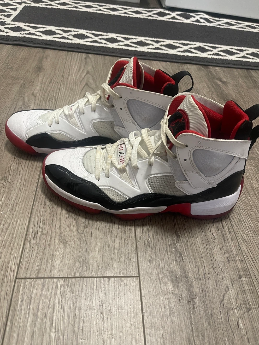 Selling a pair of Jordan Jumpman Pro Quick sneakers in white and red! They are in US size 11. The manufacturing date on the tag is 2022 March 03. Feel free to message if you have any questions!
