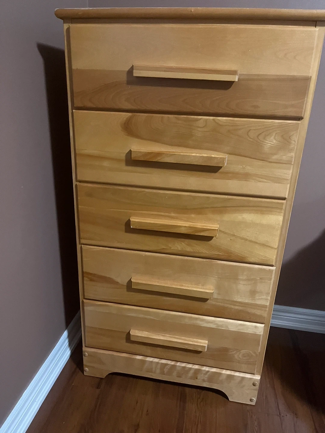 20Selling a wooden dresser with five drawers. It's a great piece for adding storage to any bedroom or living space. The dresser is in good condition and ready for a new home! 2 available…..$55.00 each