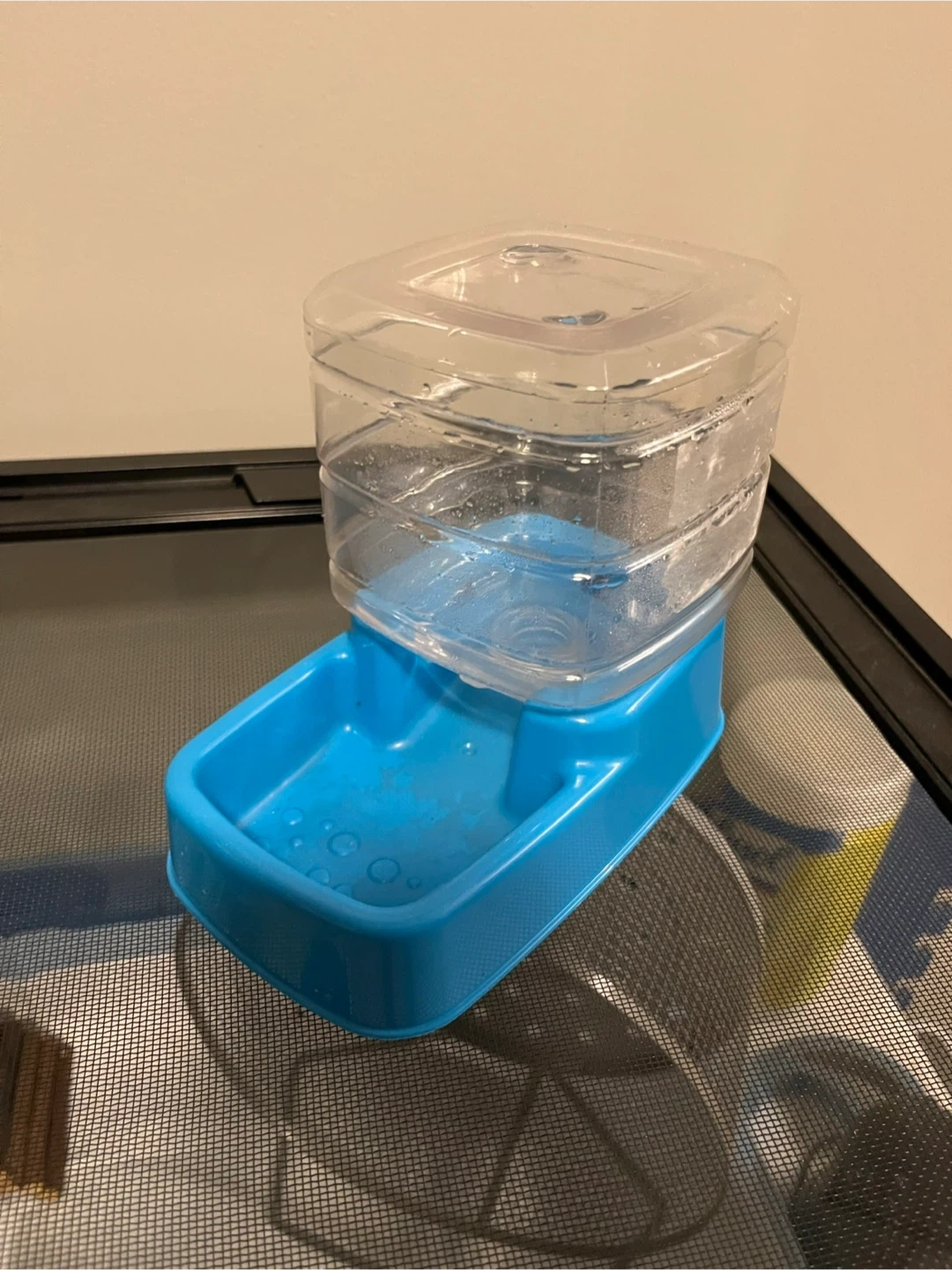 This used pet water dispenser is a convenient way to keep your small animal hydrated. It features a gravity-fed design, automatically replenishing water as your pet drinks. Perfect for busy pet parents or those going on short trips. It's in good working condition, ready to use.