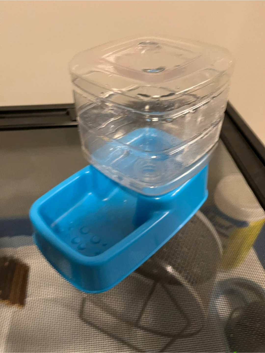 This used pet water dispenser is a convenient way to keep your small animal hydrated. It features a gravity-fed design, automatically replenishing water as your pet drinks. Perfect for busy pet parents or those going on short trips. It's in good working condition, ready to use.