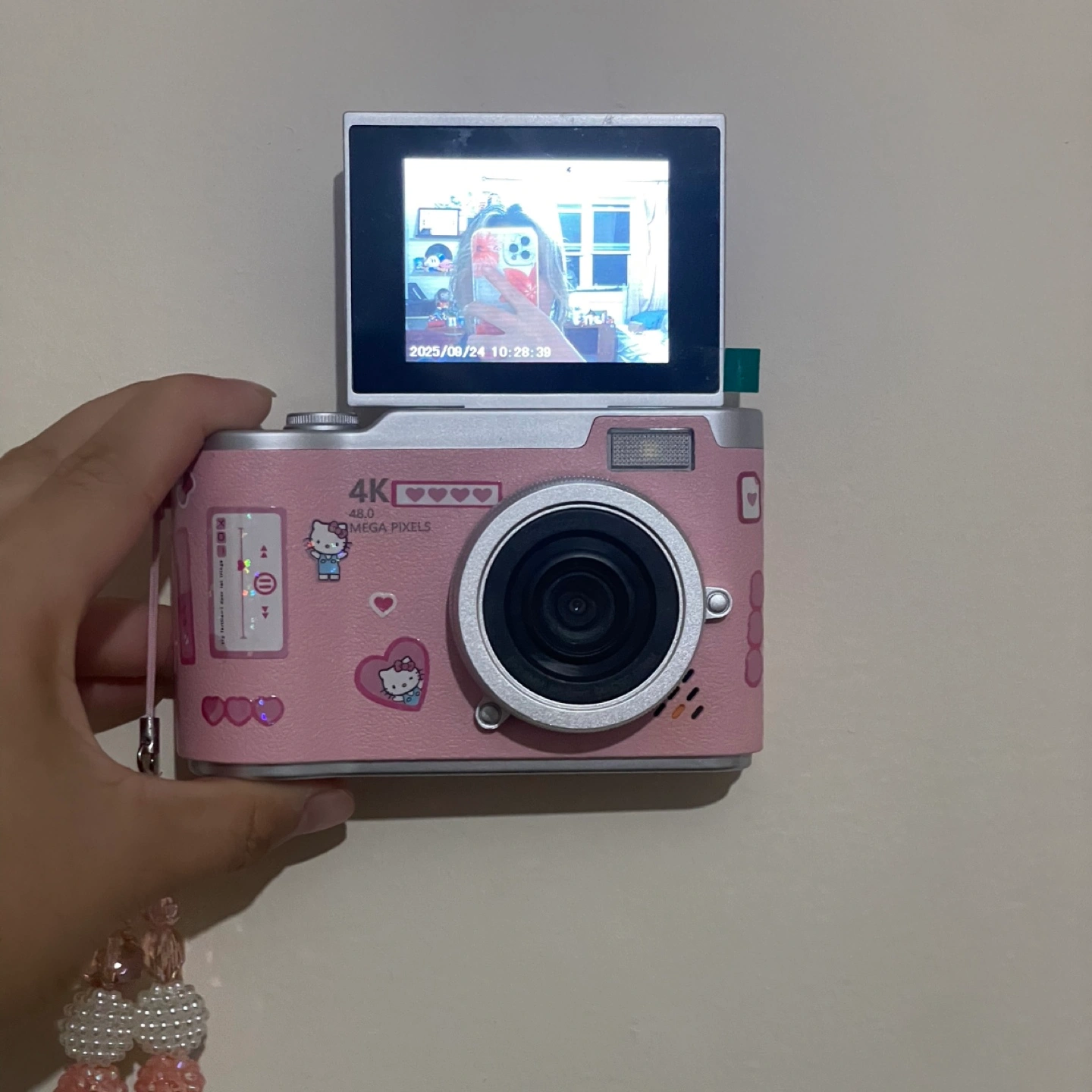 Selling a cute pink Hello Kitty 4K digital camera! It's in great condition and ready for some fun photos. Perfect for anyone who loves Hello Kitty or wants a simple, adorable camera
