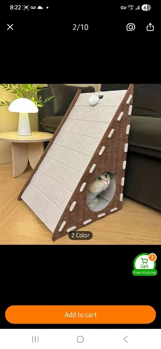 This cat climbing frame is perfect for your furry friend! It features a scratcher ramp and a cozy hideaway.