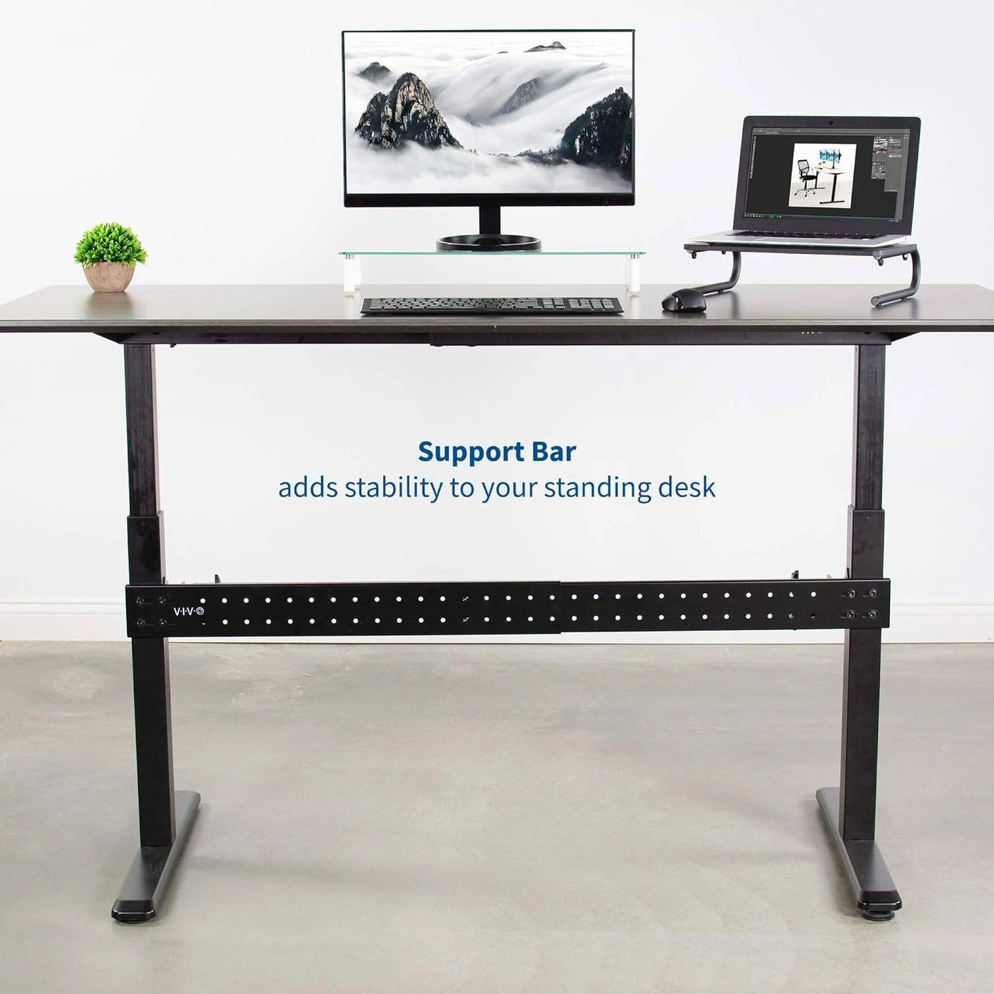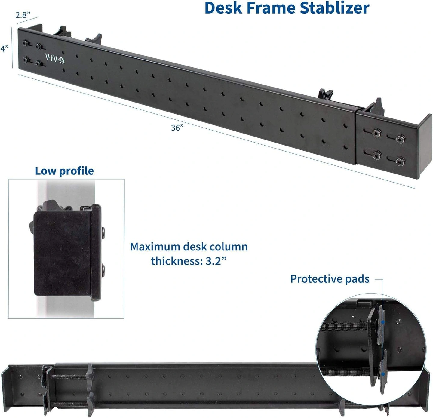 VIVO Black Universal Steel Clamp-on Desk Stabilizer Bar,