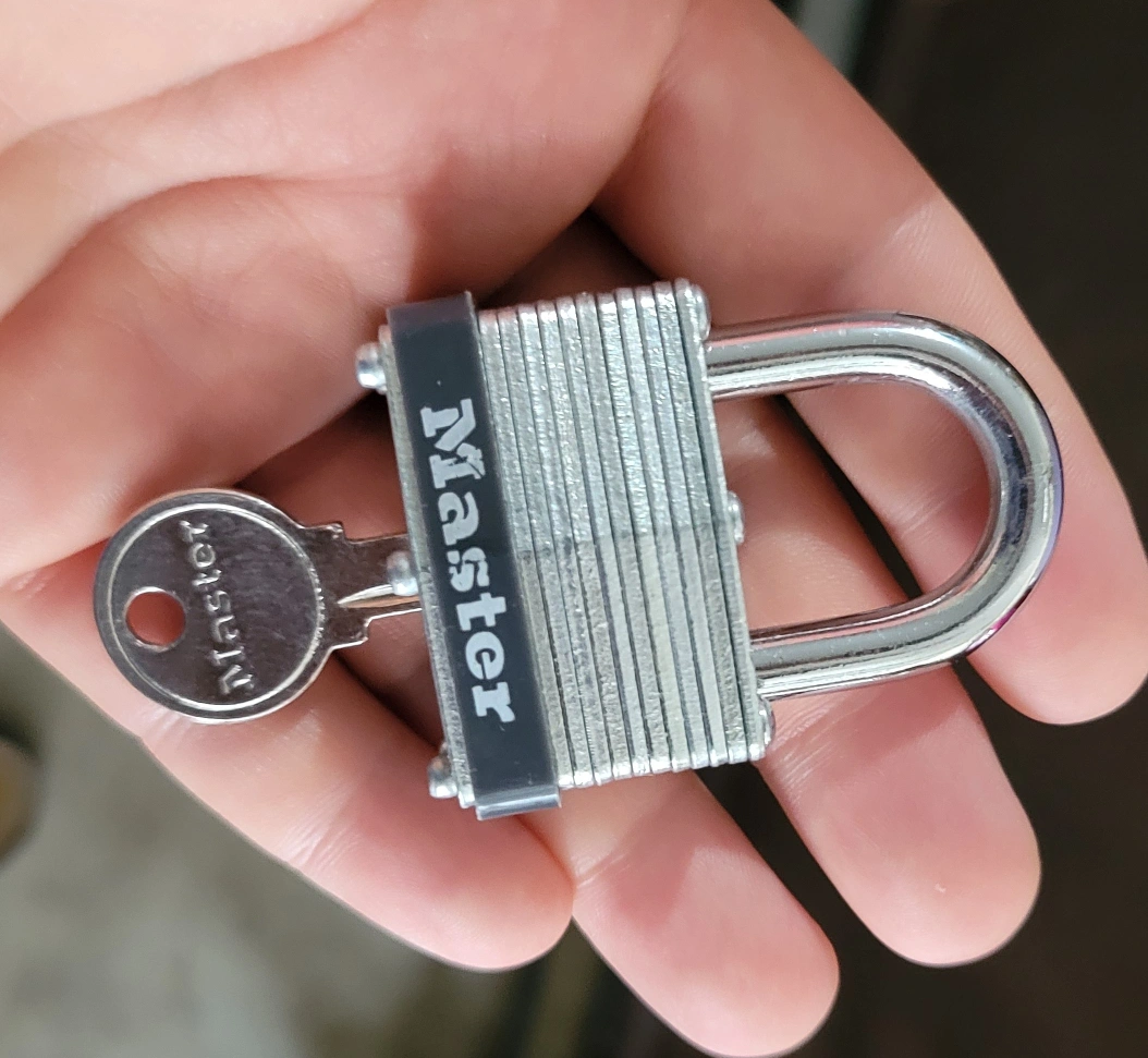 Selling a Master Lock padlock, complete with its key! Perfect for securing your belongings. It's in great shape and ready for a new home. Let me know if you are interested.