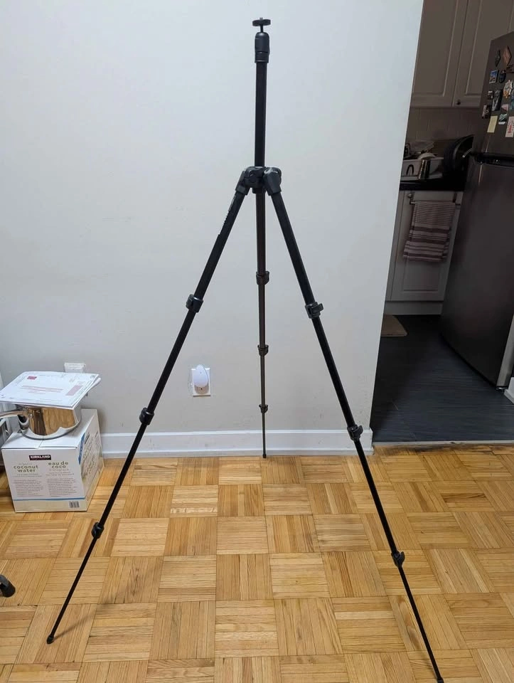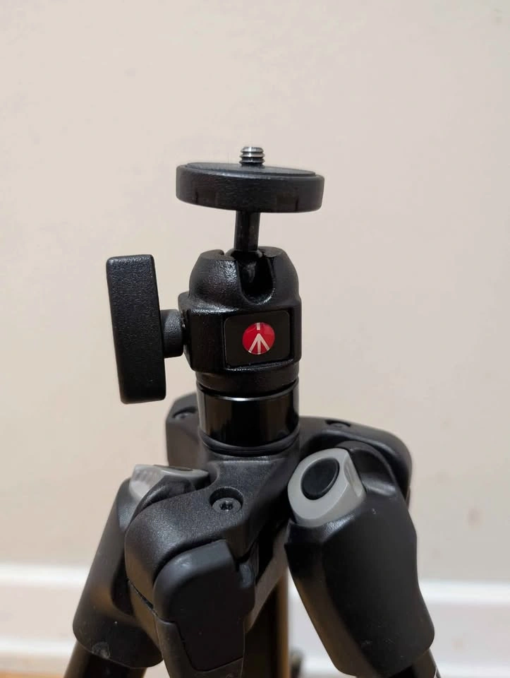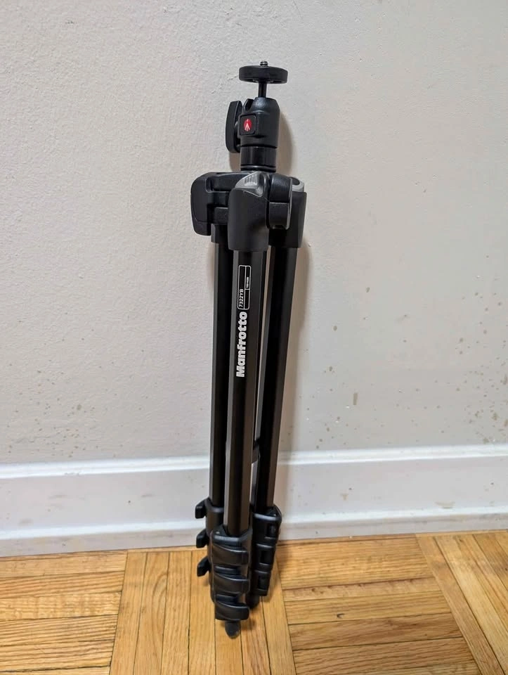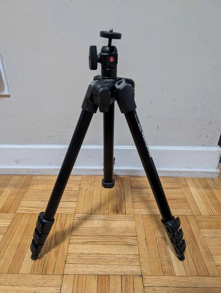 64Manfrotto Tripod Never used. I bought it but never got the chance to use it. Supports digital cameras and camcorders weighing up to 4.4 lbs (2kg) Minimum height: 13-7/16" Maximum height: 55-1/2" Ball head for lateral 90° tilt and 360° rotation 1/4" threaded attachment type Moving sale (check out my other listings as well)
