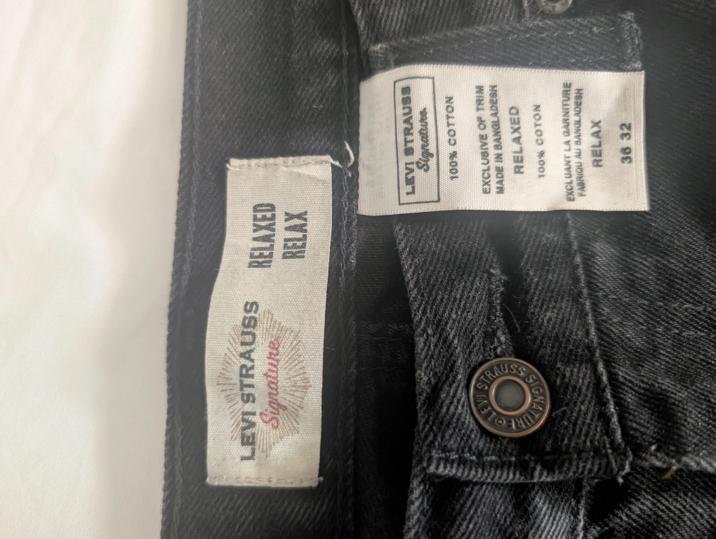 Levi Strauss Signature relaxed fit jeans in size 36x32. These jeans are a relaxed fit and made of 100% cotton. They are a classic and comfortable style!