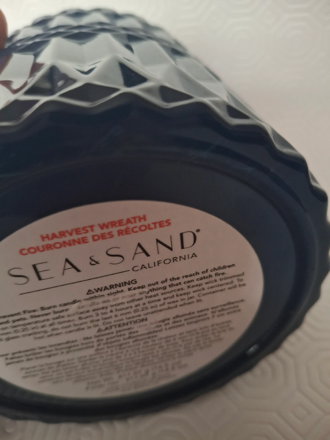 Selling a Sea & Sand candle in the Harvest Wreath scent. It's in great condition and comes with a lid. Perfect for adding a cozy touch to your home!