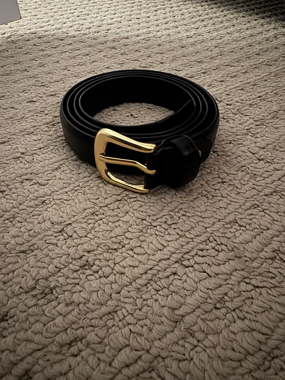 20Selling a stylish black leather belt featuring a gold buckle. It's in great condition and would be a great addition to any wardrobe! The classic design makes it versatile for both casual and dressy outfits