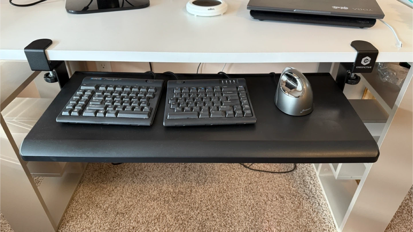 Selling an Ergoactive under desk keyboard tray in black! It's in great condition and ready to help you optimize your workspace. This tray easily clamps onto your desk, providing a convenient and ergonomic solution for keyboard placement. PLEASE NOTE: Pickup in Tuscany area or meetup up at Market Mall. Price is firm. Cash only. Please send me a message with date/time to pickup.