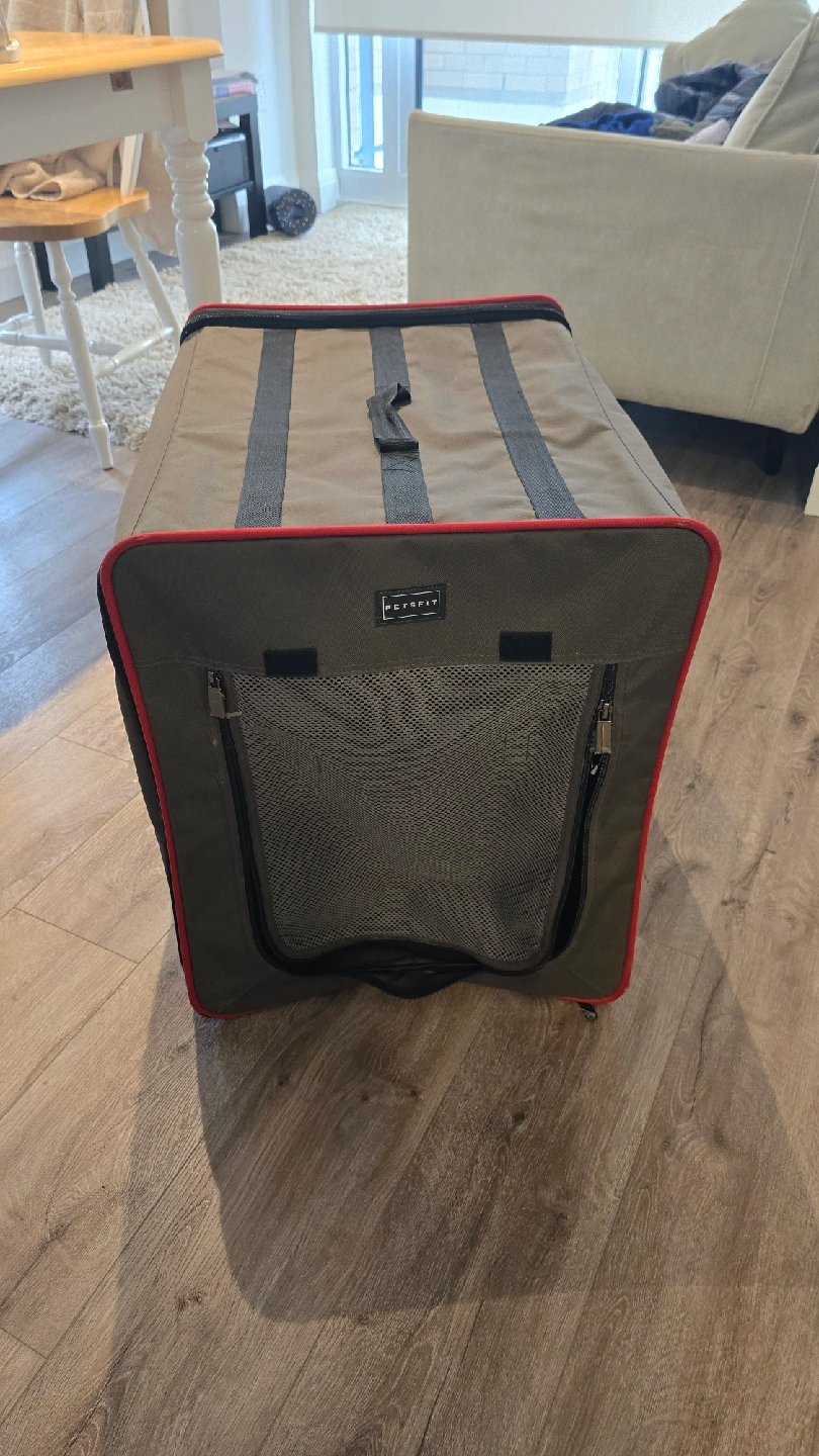 Selling a Petfit expandable pet carrier in great condition! It's perfect for travel or vet visits. The carrier has mesh windows for ventilation and a zippered opening for easy access. It measures approximately 24 inches in length.