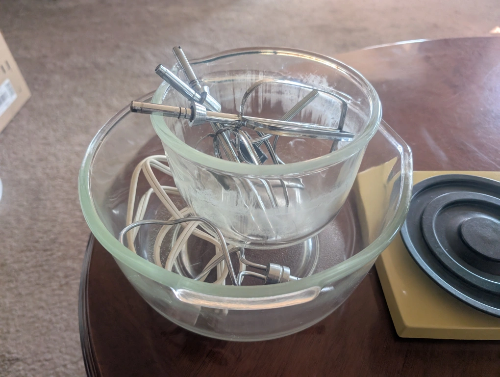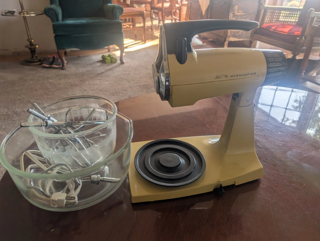 Selling a vintage Sunbeam Mixmaster stand mixer. from 1960/1970's. It comes with two glass bowls and the beaters. A great addition to any kitchen! Has been in storage for many years, tested and still works well.